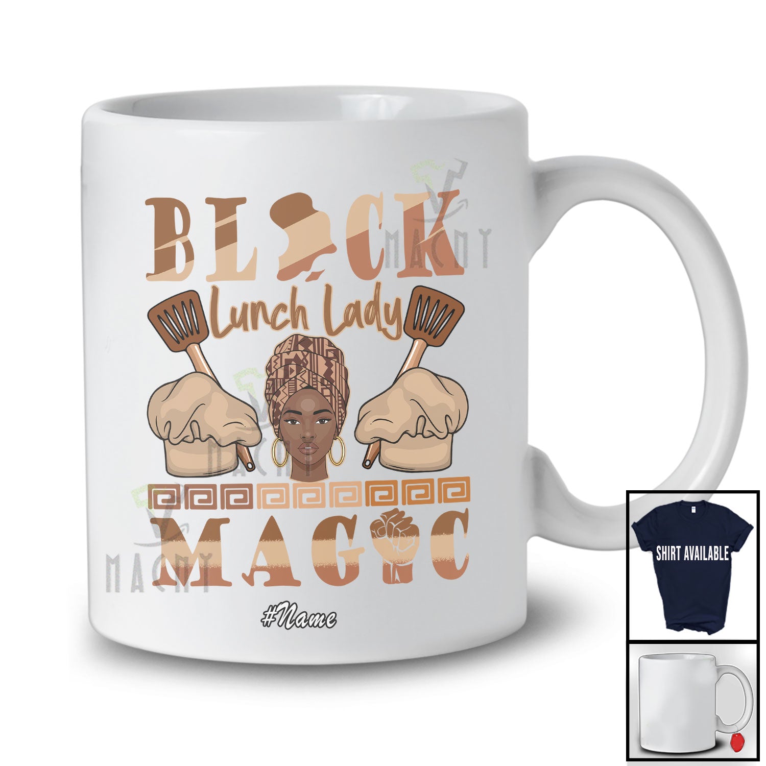 Personalized Custom Name Black Lunch Lady Magic; Proud Black History Month Afro Women Melanin T-Shirt