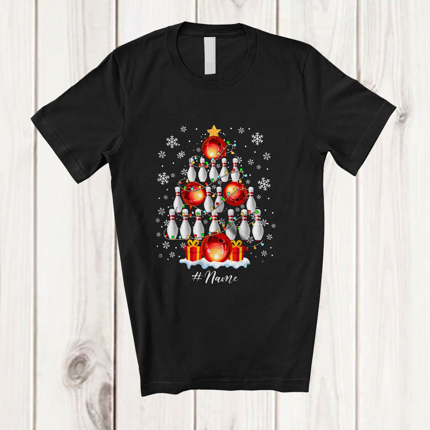 new MacnyStore - Personalized Custom Name Bowling Christmas Tree Lights; Joyful Sport Playing Player Team T-Shirt – Macnystore