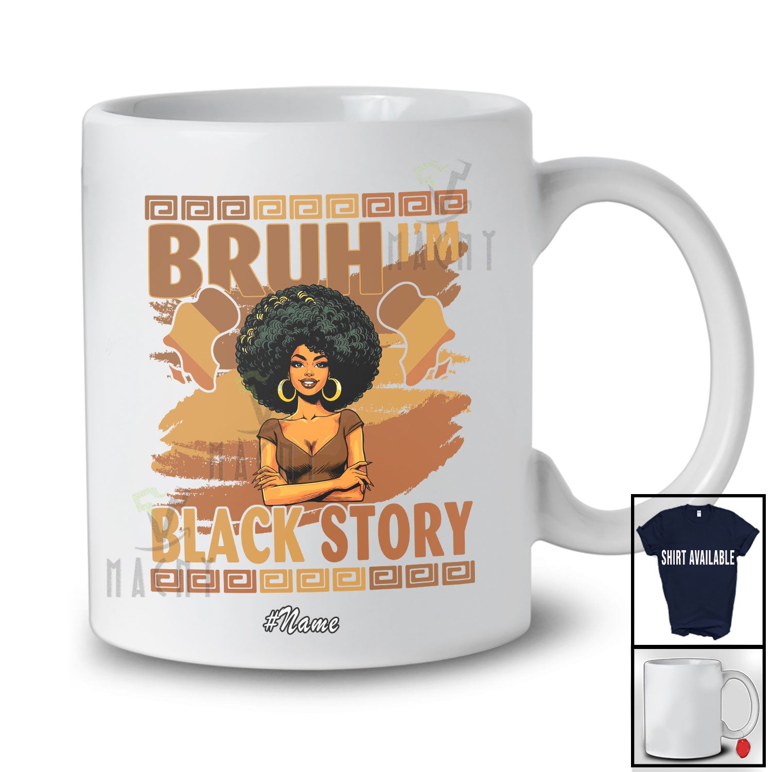 Personalized Custom Name Bruh I'm Black History; Joyful Month Afro Women; Brown African Melanin T-Shirt. This cotton t-shirt is a durable staple product with a classic fit. One of the most popular items, it has a relaxed style made for everyday and casual wear.