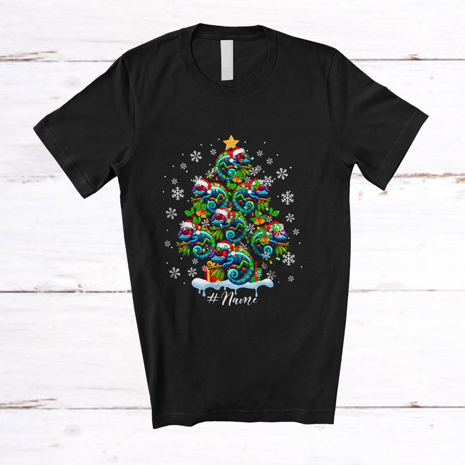Personalized Custom Name Chameleon Christmas Tree; Amusing X-mas Lights Animal Lover T-Shirt