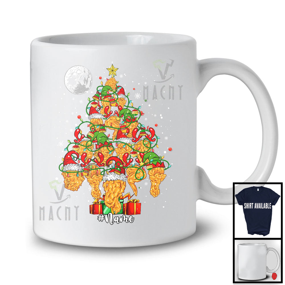 • Personalized Custom Name Chicken Nuggets Christmas Tree; Amazing X-mas Lights Food Lover T-Shirt. This cotton t-shirt is a durable staple product with a classic fit. One of the most popular items, it has a relaxed style made for everyday and casual wear.