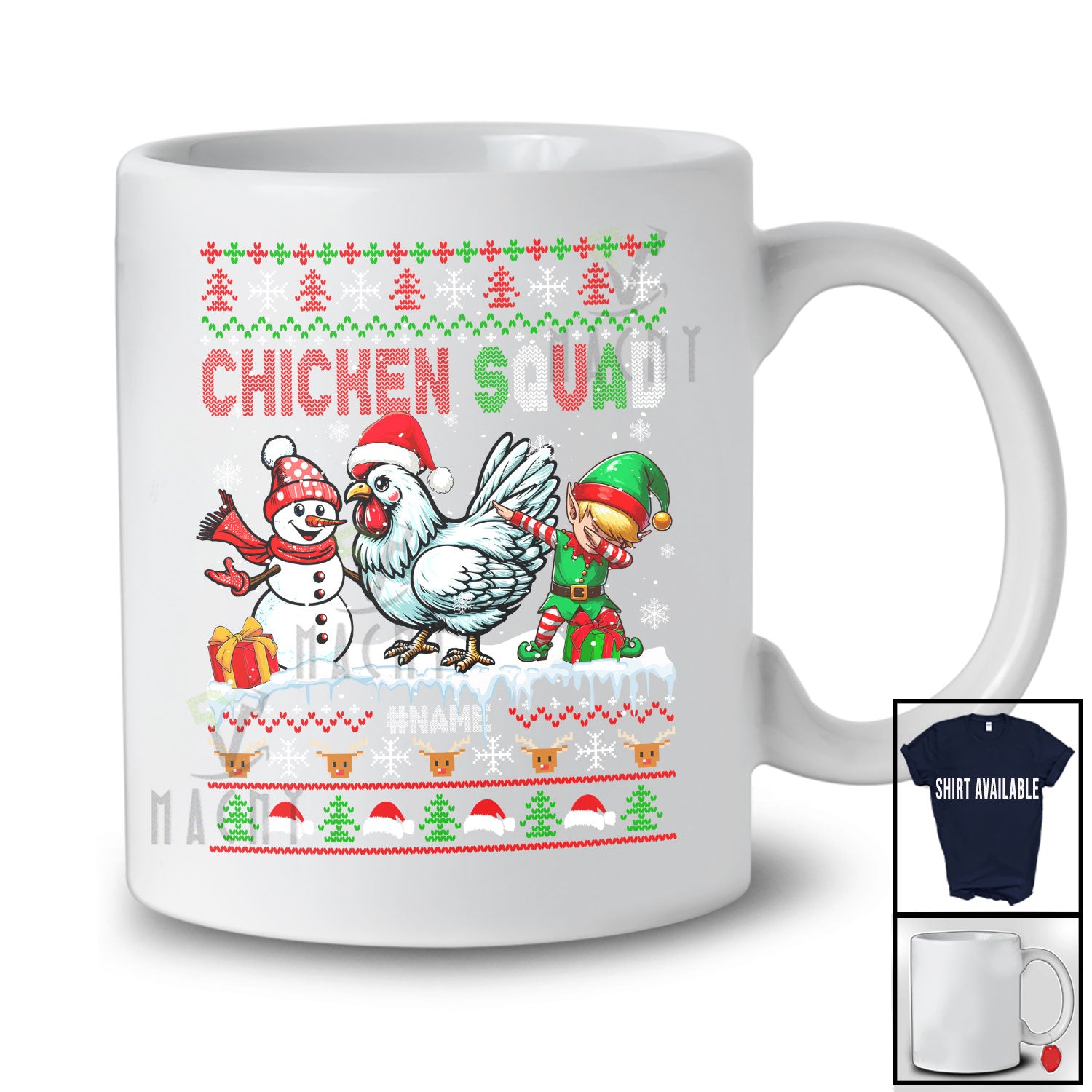 Personalized Custom Name Chicken Squad; Amazing Christmas Sweater Snowman Dabbing Elf; Animal T-Shirt. This cotton t-shirt is a durable staple product with a classic fit. One of the most popular items, it has a relaxed style made for everyday and casual wear.