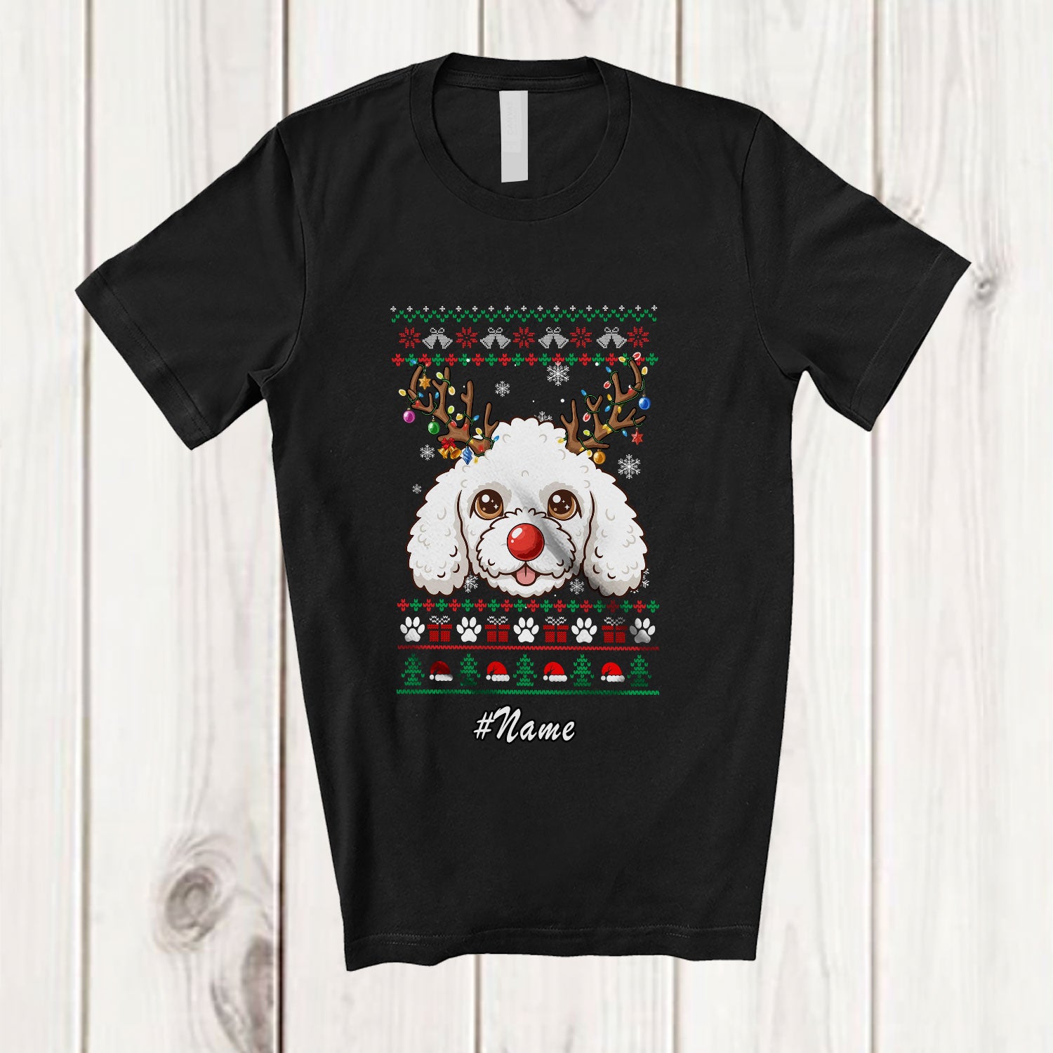 Personalized Custom Name Christmas Reindeer Poodle Face; Lovely Sweater Lights Farmer T-Shirt