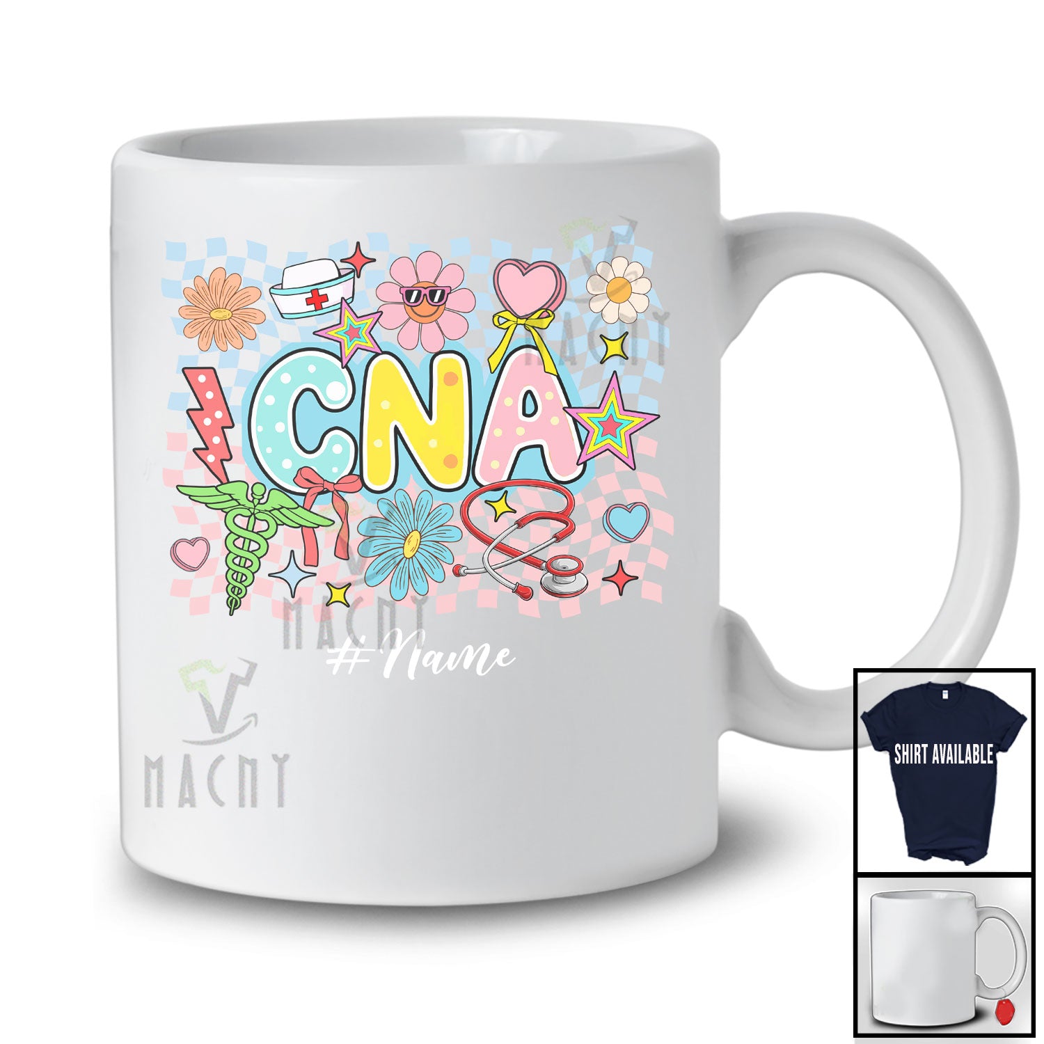 • Personalized Custom Name CNA; Lovely Back To School Flowers Coquette Nurse Nursing T-Shirt. This cotton t-shirt is a durable staple product with a classic fit. One of the most popular items, it has a relaxed style made for everyday and casual wear.