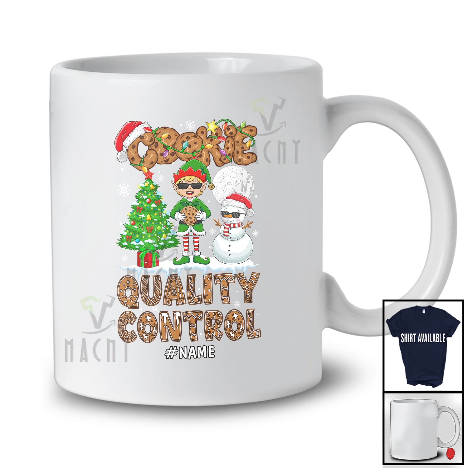 Personalized Custom Name Cookie Quality Control; Lovely Christmas Elf Snowman Baker Baking T-Shirt. This cotton t-shirt is a durable staple product with a classic fit. One of the most popular items, it has a relaxed style made for everyday and casual wear.