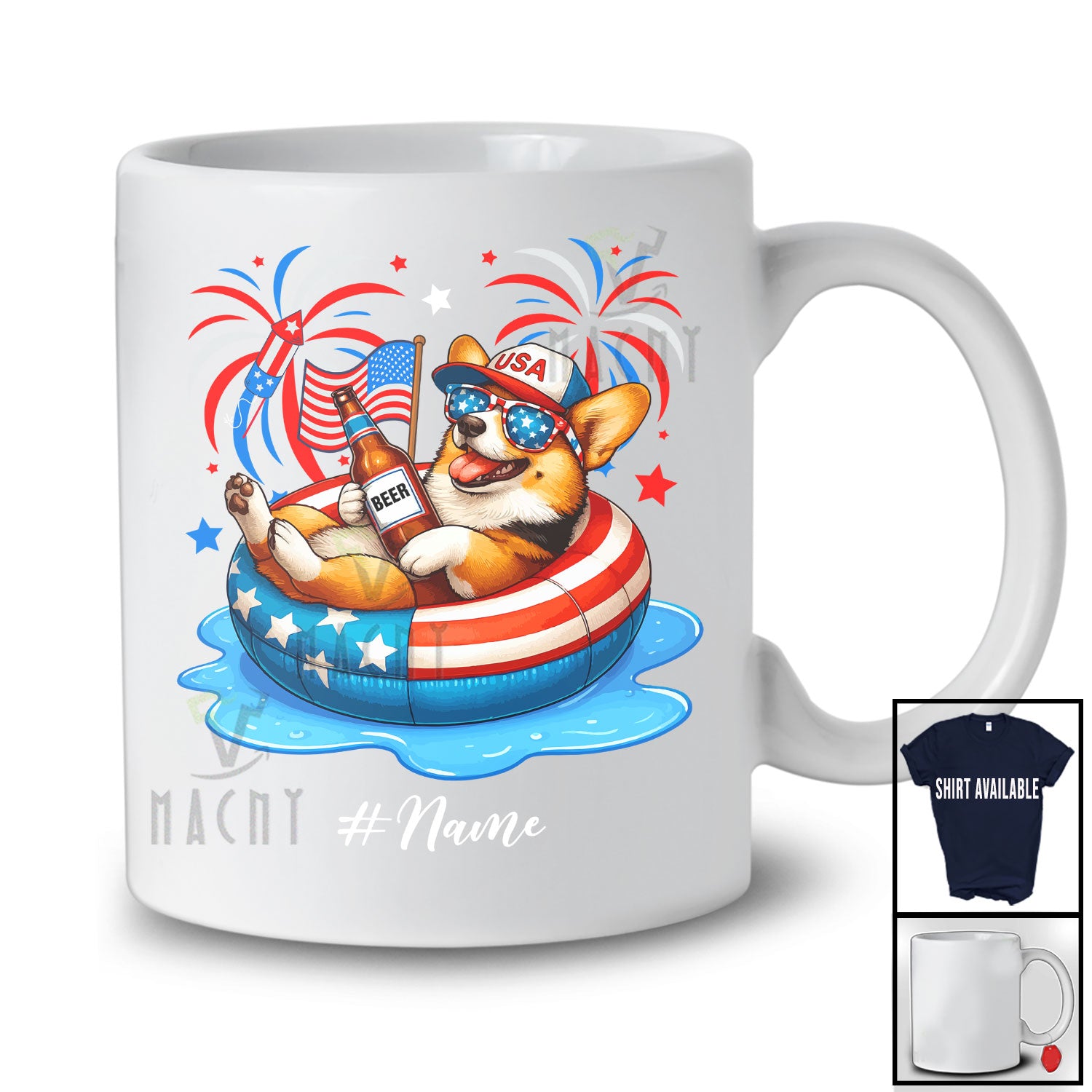 Imagine if you could be satisfied and content with your purchase. That can very much be your reality with the Personalized Custom Name Corgi Drinking On Float Beach; Joyful 4th Of July Patriotic T-Shirt.