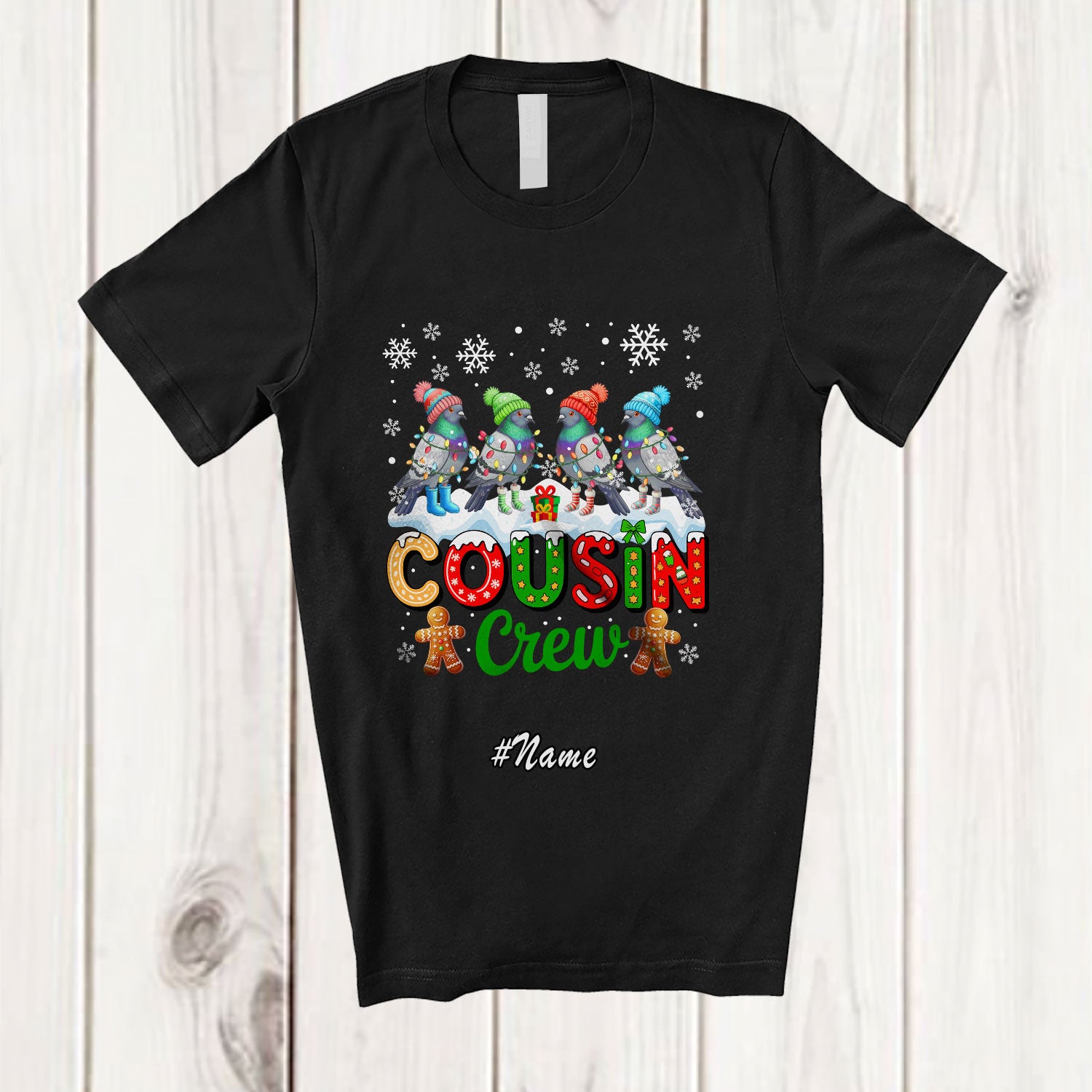 Personalized Custom Name Cousin Crew; Lovely Christmas Lights Four Pigeon X-mas; Bird T-Shirt