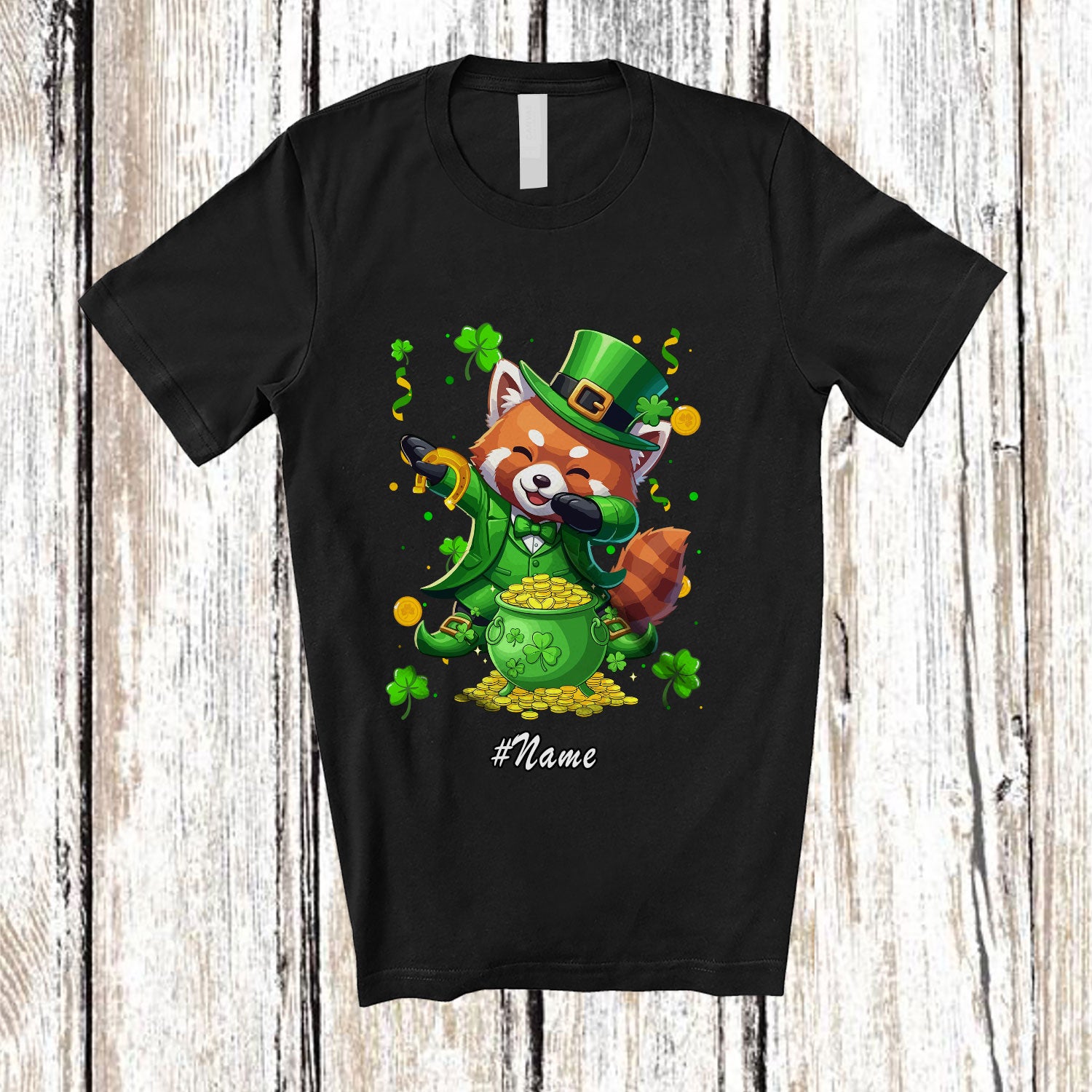 Personalized Custom Name Dabbing Red Panda With Horseshoe; Joyful St. Patrick's Day Wild Animal T-Shirt