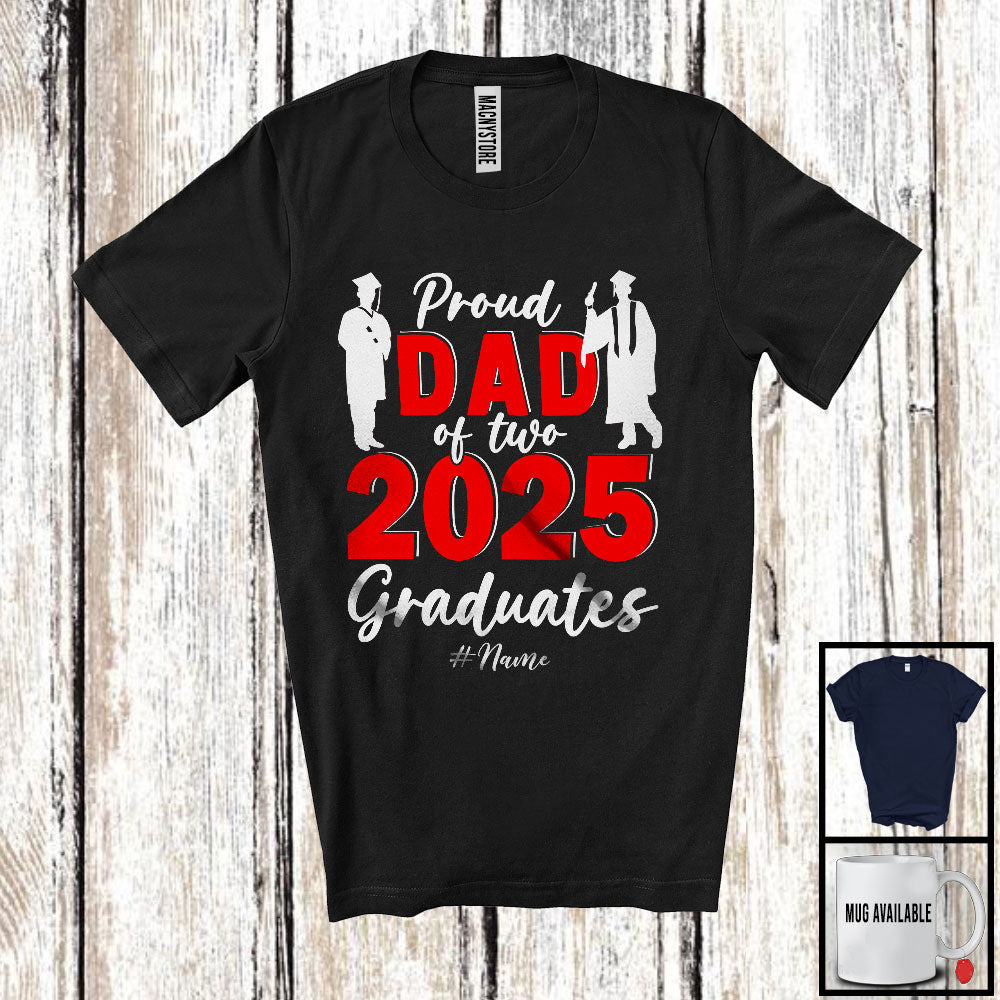 Personalized Custom Name Dad Of Two 2025 Graduates; Proud Father's Day Twin Boys; Graduation T-Shirt
