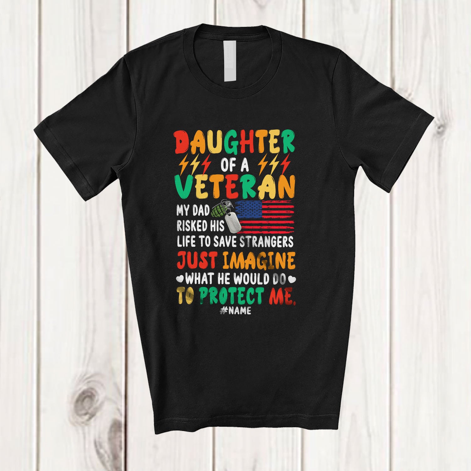 Personalized Custom Name Daughter Of A Veteran; Proud Father's Day Veteran Dad Protector; Family T-Shirt
