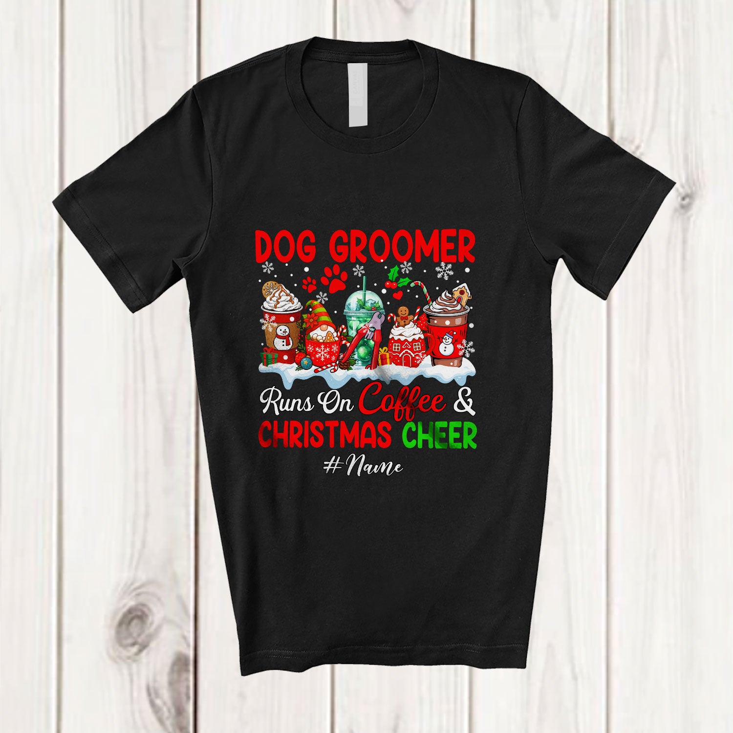 Personalized Custom Name Dog Groomer Runs On Coffee Christmas Cheer; Lovely Snow Jobs T-Shirt