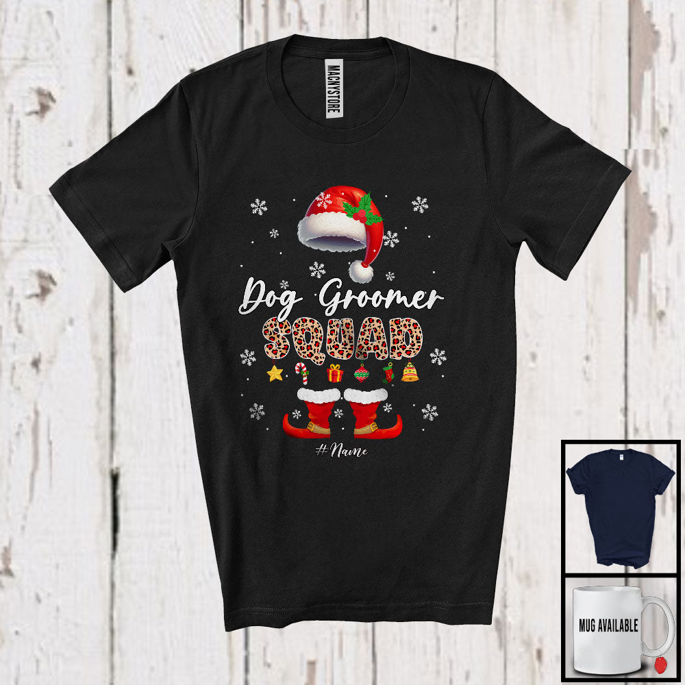 Personalized Custom Name Dog Groomer Squad; Amusing Christmas Leopard Santa; Pajamas Jobs T-Shirt