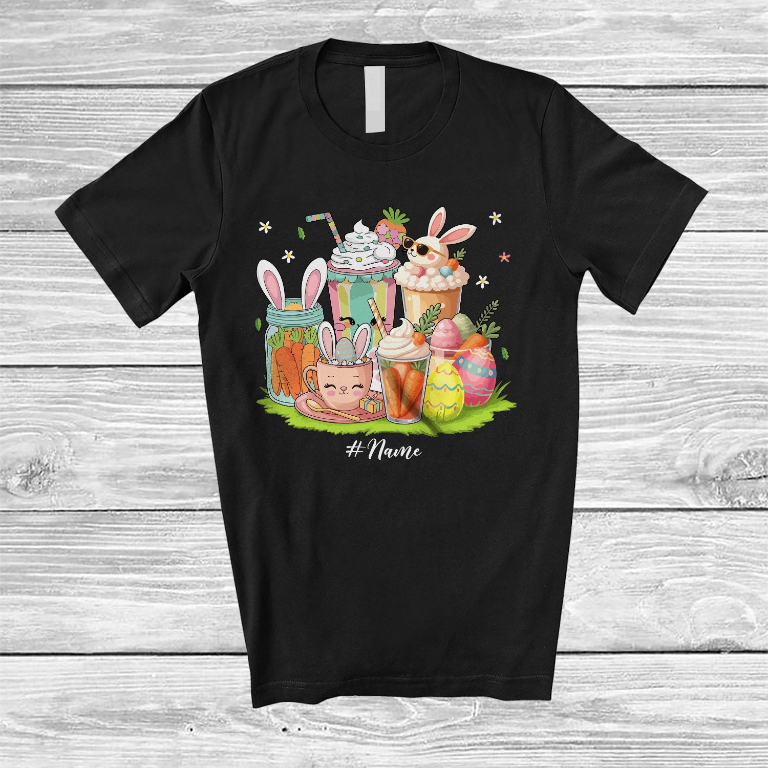 Personalized Custom Name Easer Egg Carrot Bunny Coffee; Amazing Easter Eggs Hunt; Family T-Shirt. This cotton t-shirt is a durable staple product with a classic fit. One of the most popular items, it has a relaxed style made for everyday and casual wear.