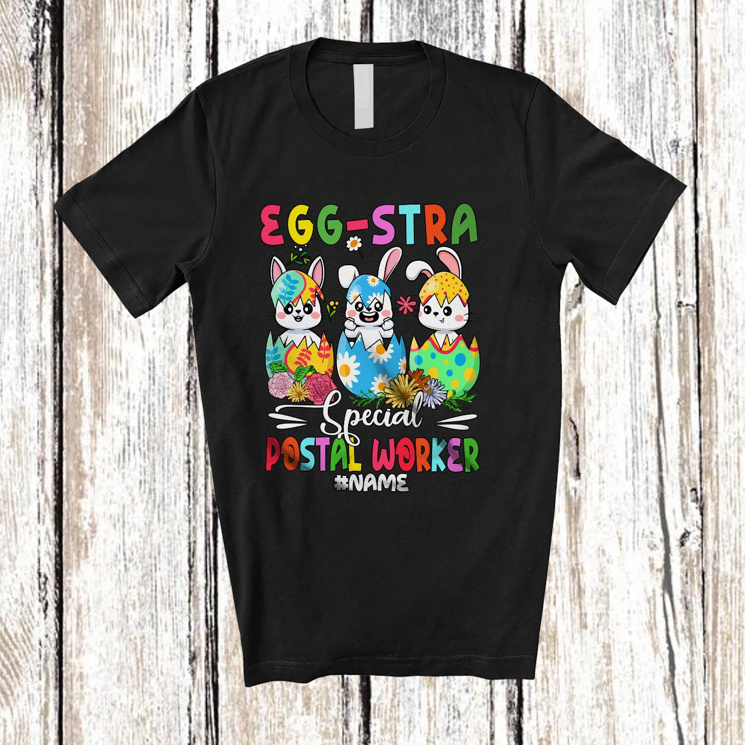 Personalized Custom Name Egg-Stra Special Postal Worker; Amazing Easter Extra Three Bunnies In Eggs T-Shirt