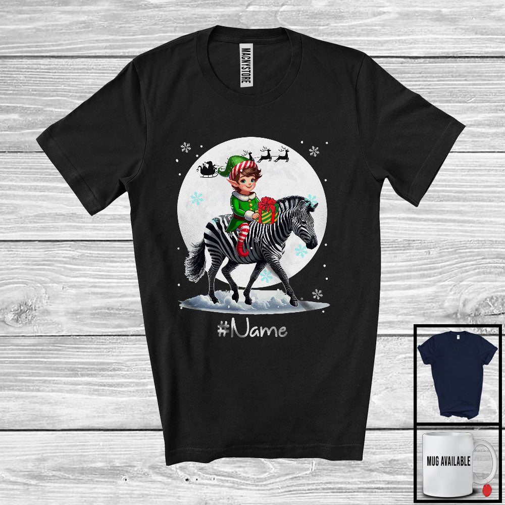 Personalized Custom Name Elf Riding Zebra, Joyful Christmas Moon Snow Zebra, X-mas Team T-Shirt
