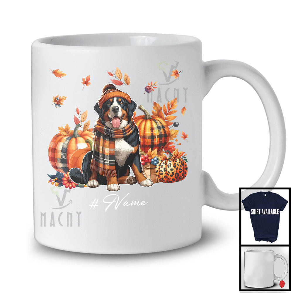 Personalized Custom Name Entlebucher Mountain Plaid Pumpkins; Thanksgiving Fall Leaves T-Shirt