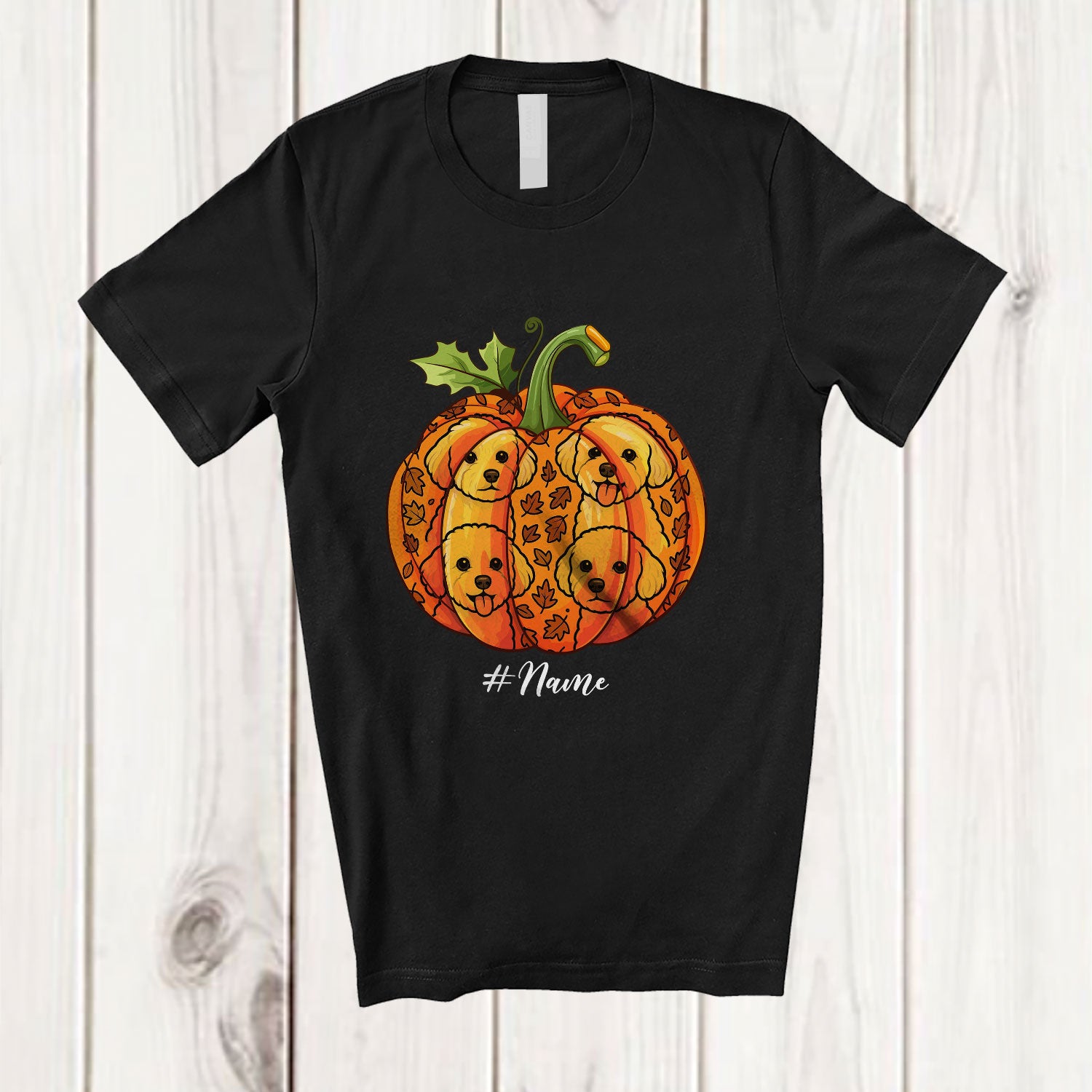 • Personalized Custom Name Fall Maltipoos Pumpkin; Happy Thanksgiving Halloween Family T-Shirt. This cotton t-shirt is a durable staple product with a classic fit. One of the most popular items, it has a relaxed style made for everyday and casual wear.