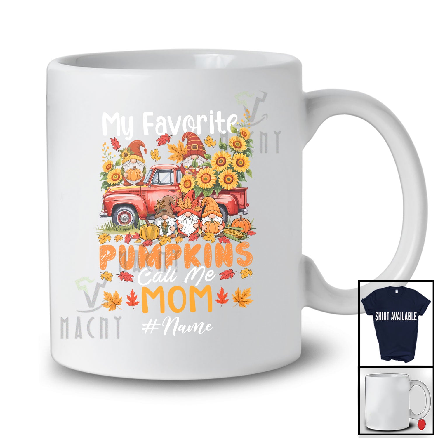 This Personalized Custom Name Favorite Pumpkins Call Me Mom; Lovely Thanksgiving Gnomes On Pickup T-Shirt is great idea gift for your family, friends in this birthday, christmas, mother's day, father's day, patrick's day or any holiday.