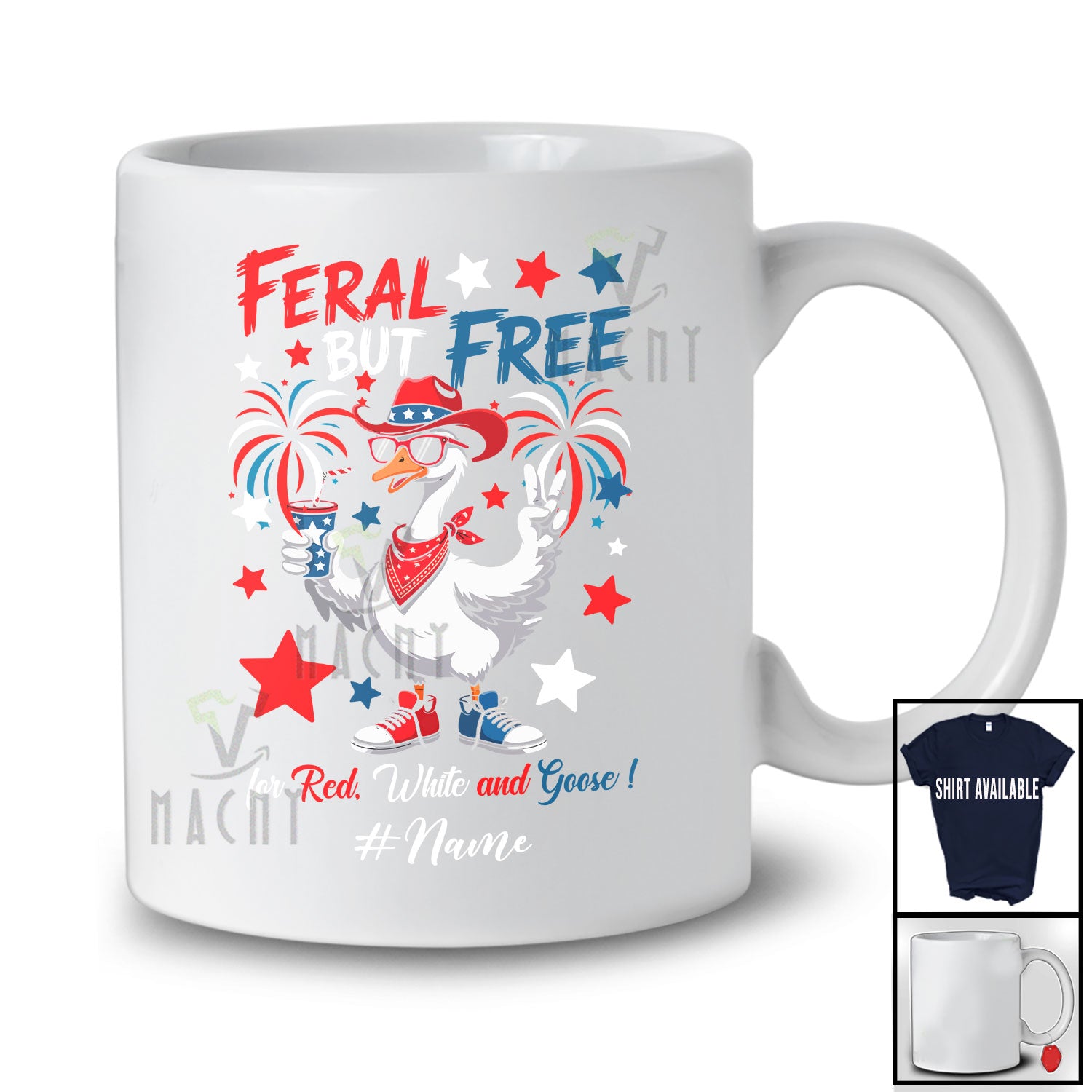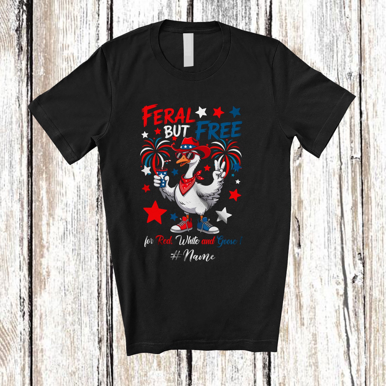 • Personalized Custom Name Feral But Free; Awesome 4th Of July American Flag Goose Farmer T-Shirt. This cotton t-shirt is a durable staple product with a classic fit. One of the most popular items, it has a relaxed style made for everyday and casual wear.