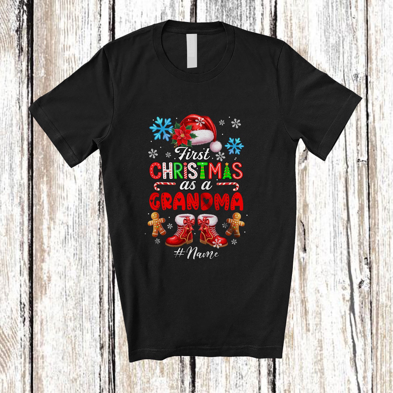 Personalized Custom Name First Christmas As A Grandma; Joyful Santa Promoting Future; Family T-Shirt
