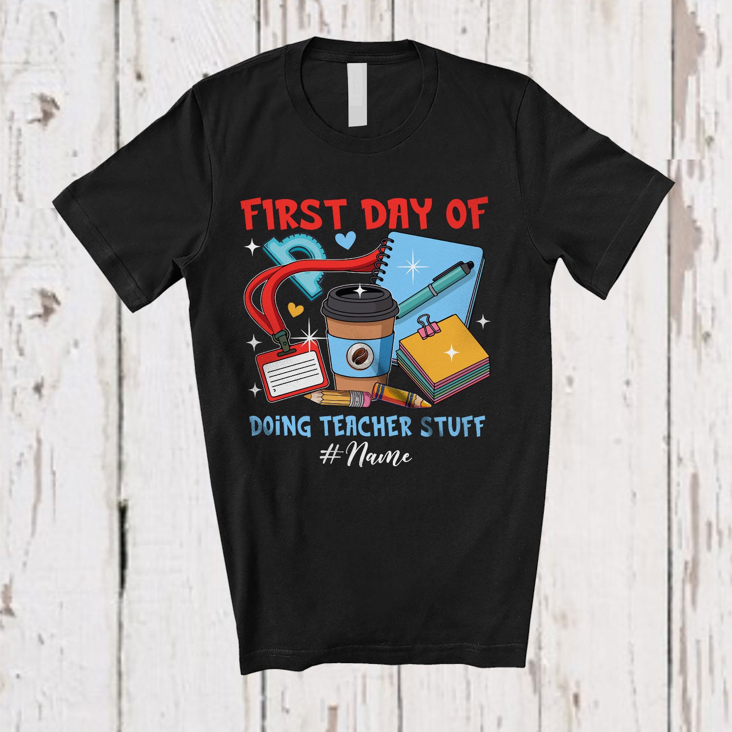 Personalized Custom Name First Day Of Doing Teacher Stuff; Joyful Back To School Coffee T-Shirt