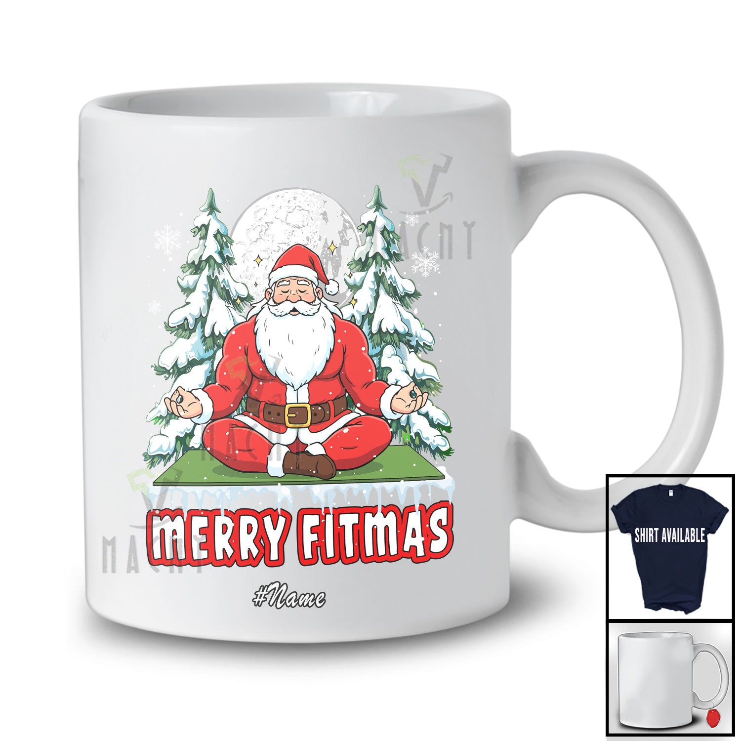 Personalized Custom Name Fitmas; Merry Christmas Moon Tree Santa Yoga T-Shirt