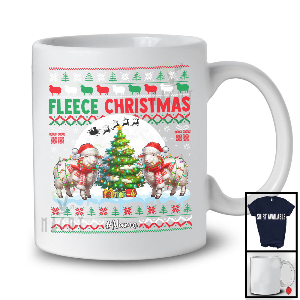 Personalized Custom Name Fleece Christmas; Lovely X-mas Moon Sheep Santa; Sweater Farmer T-Shirt
