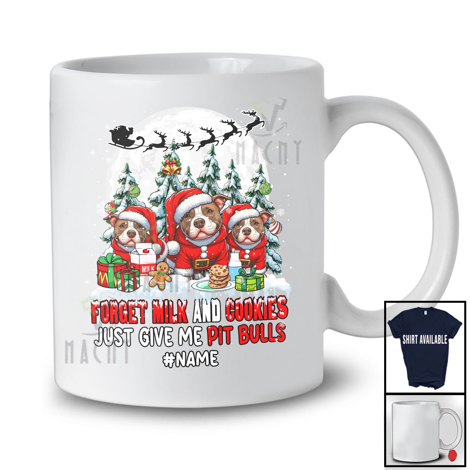 Personalized Custom Name Forget Milk Give Me Pit Bulls; Joyful Christmas Three Santa Family T-Shirt