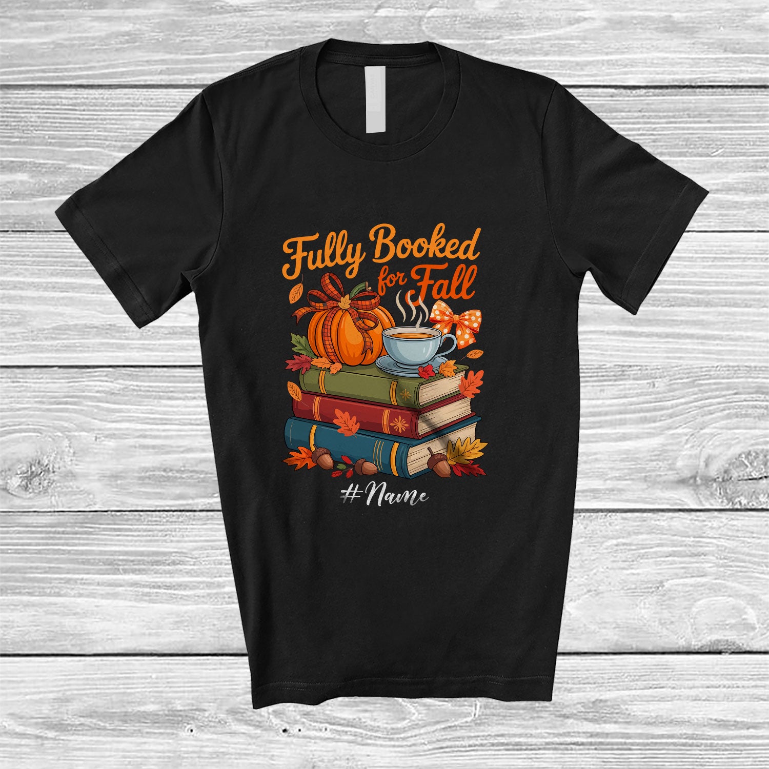 Personalized Custom Name Fully Booked; Joyful Thanksgiving Pumpkin Coffee Books Librarian T-Shirt