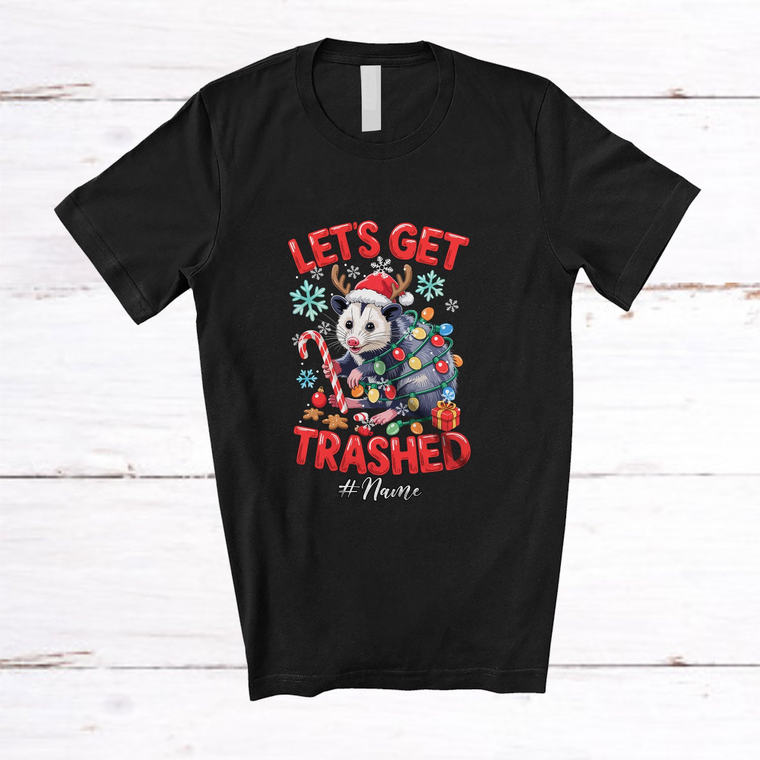 The Personalized Custom Name Get Trashed; Humorous Christmas Lights Santa Opossum Candy Canes T-Shirt was built with people like you in mind. Something to keep you happy. Every. Single. Day.