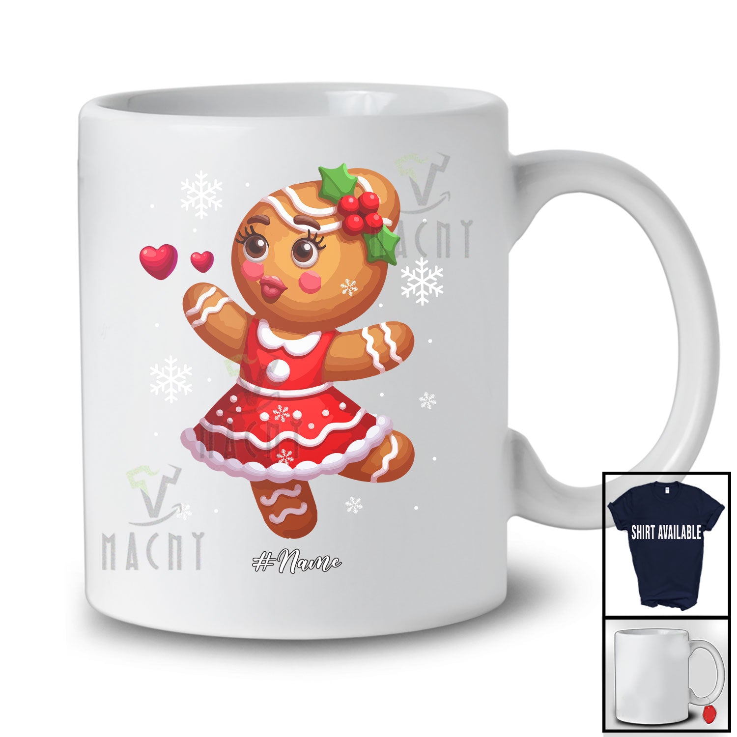 new MacnyStore - Personalized Custom Name Gingerbread Couple; Lovely Christmas Snowing; Girl Women Baker T-Shirt – Macnystore