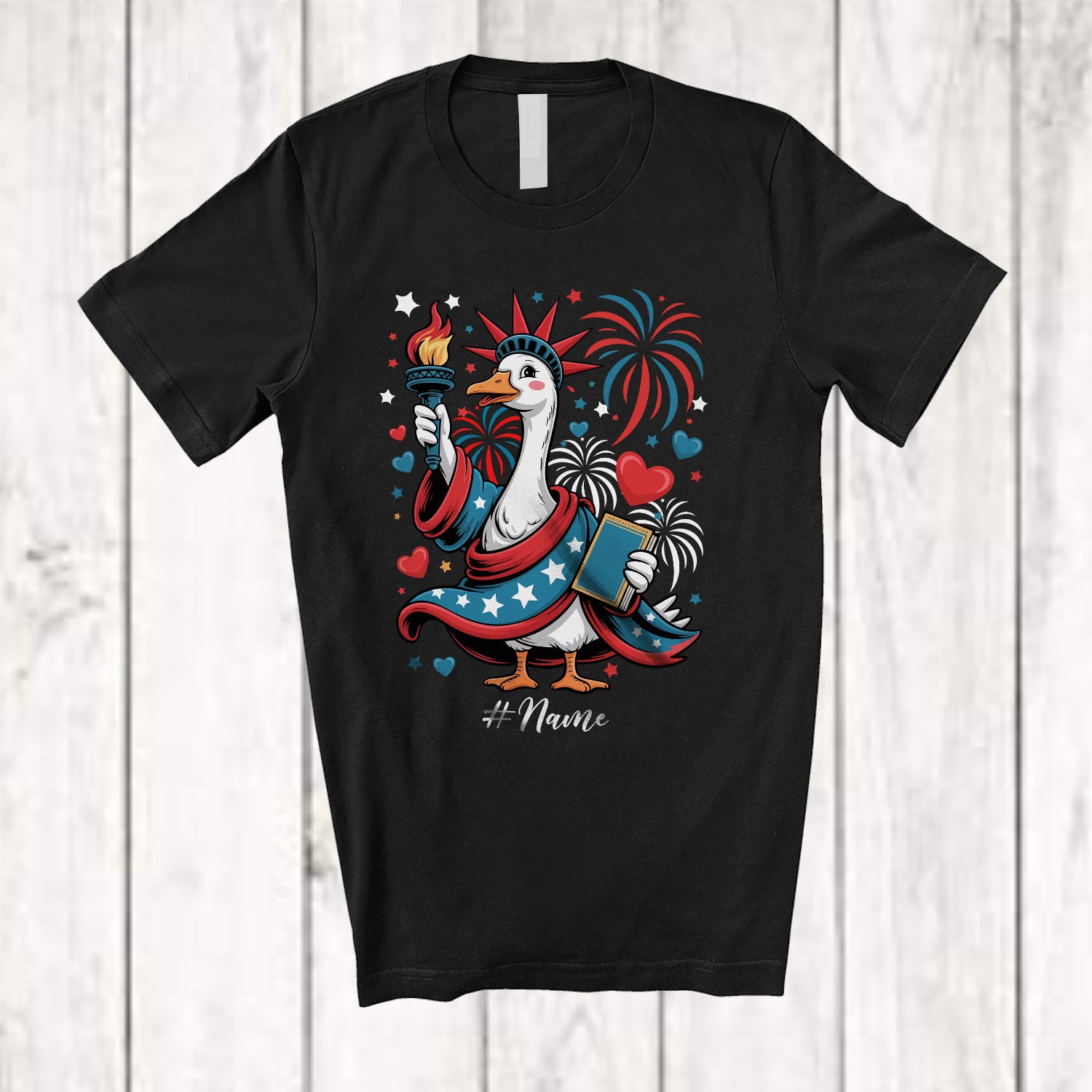 Personalized Custom Name Goose Statue of Liberty; Humorous 4th of July American Fireworks; Patriotic T-Shirt