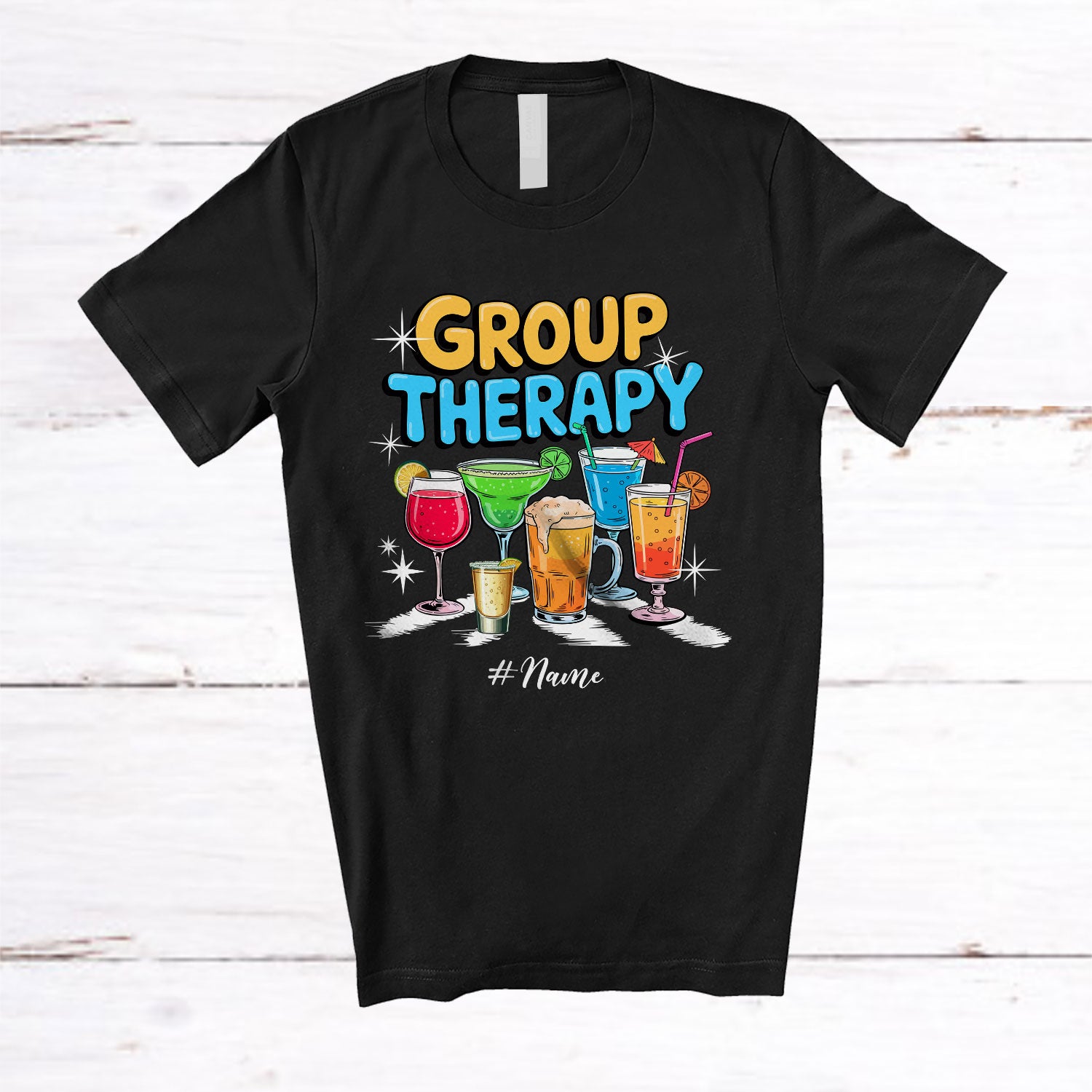 Personalized Custom Name Group Therapy; Colorful Cocktail Wine Drinking; Thepary Theparist T-Shirt