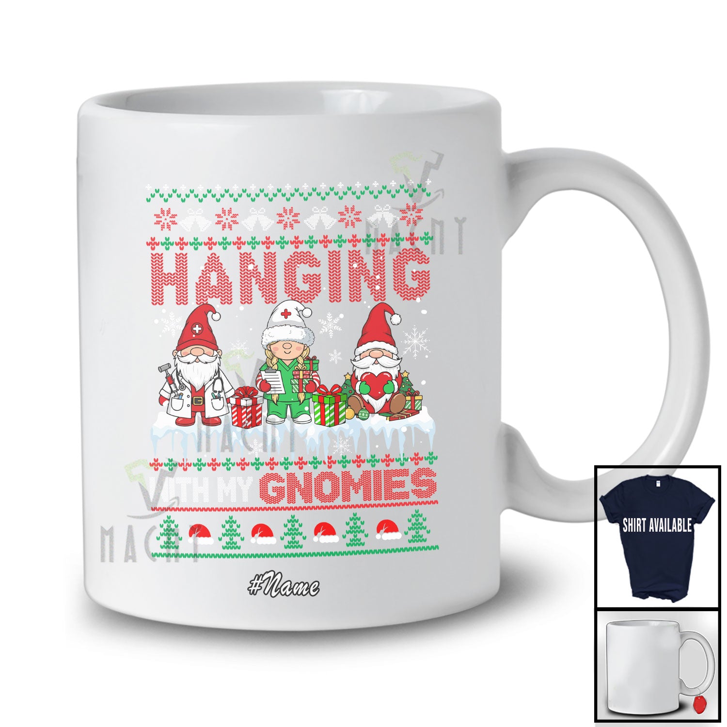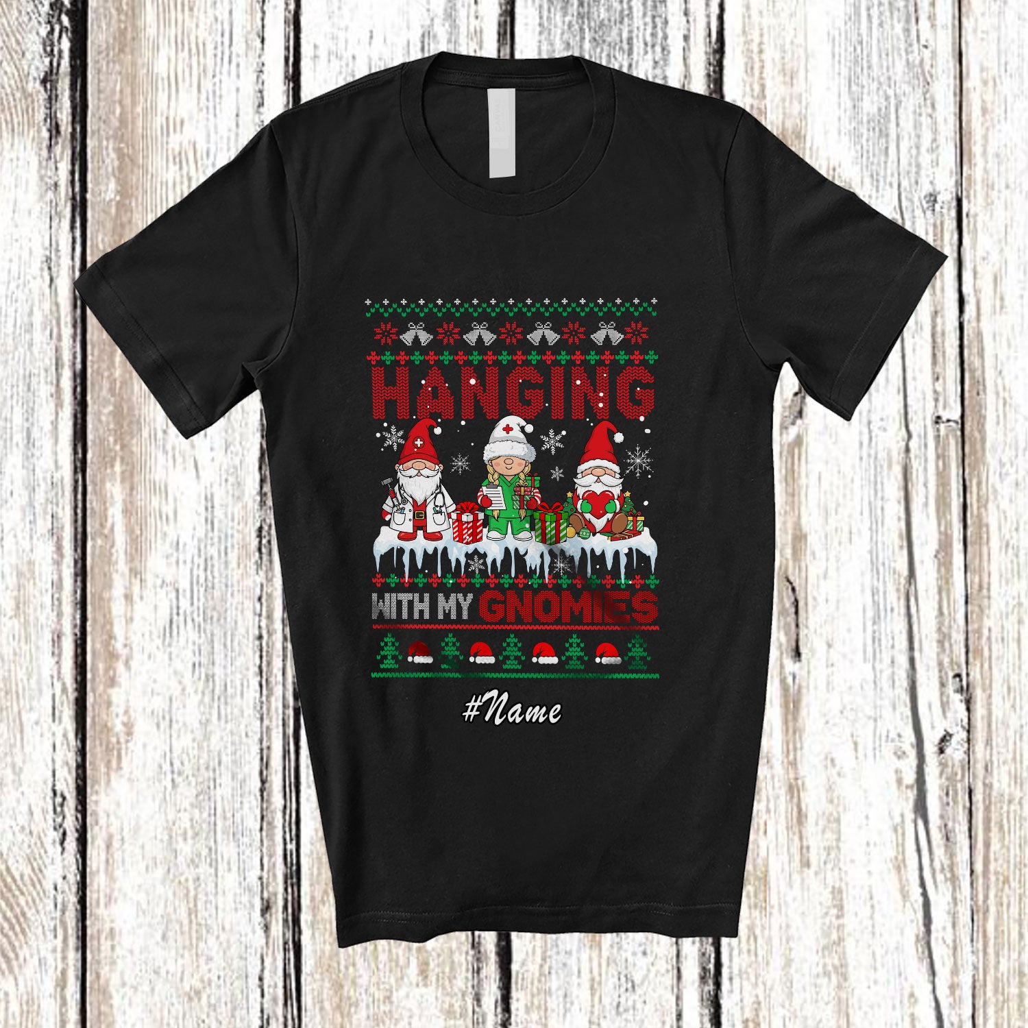 This Personalized Custom Name Hanging With Gnomies; Amazing Christmas Sweater Gnomes Elf Nurse T-Shirt is great idea gift for your family, friends in this birthday, christmas, mother's day, father's day, patrick's day or any holiday.