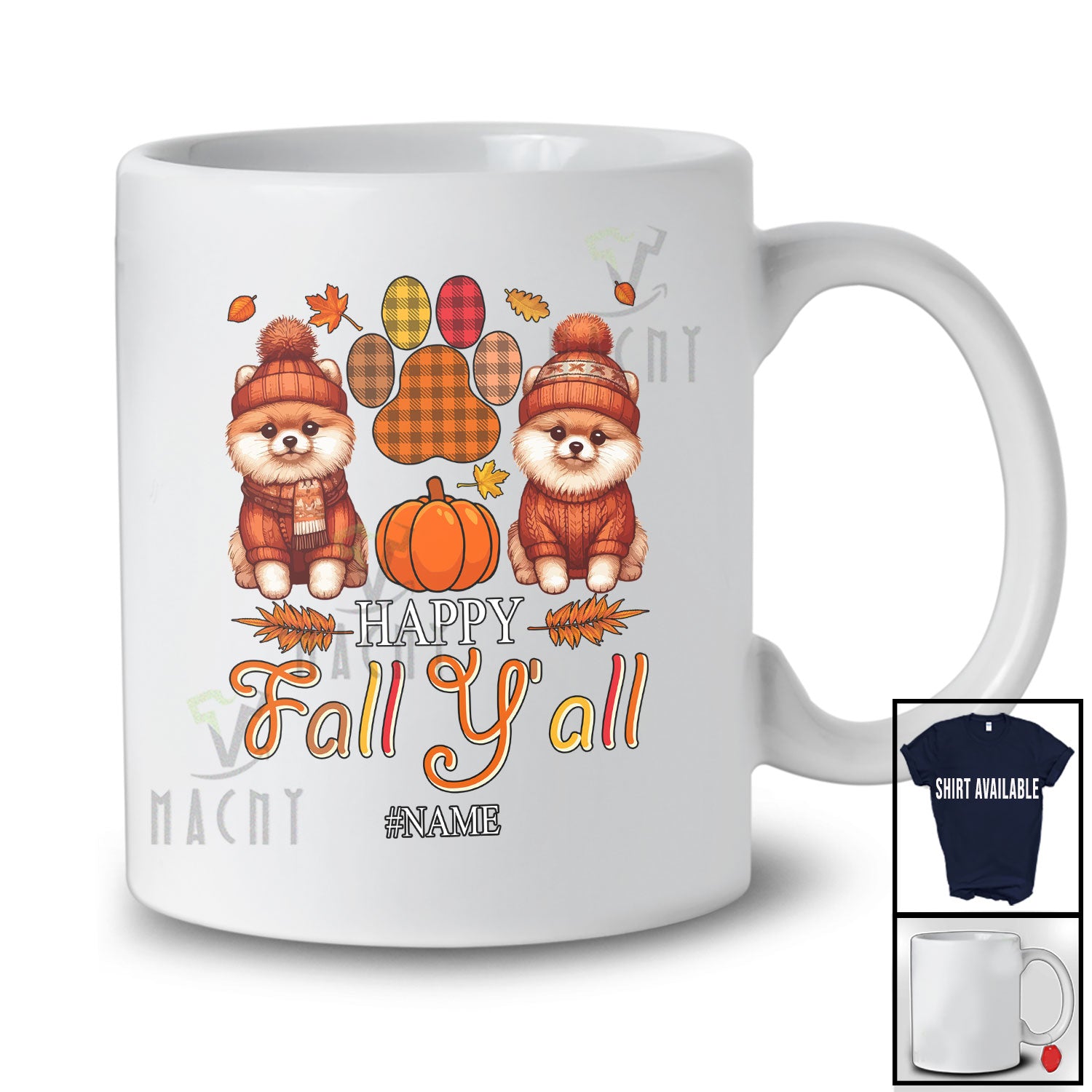 • Personalized Custom Name Happy Fall Y'all; Amusing Thanksgiving Plaid Paws Pomeranian Owner T-Shirt. This cotton t-shirt is a durable staple product with a classic fit. One of the most popular items, it has a relaxed style made for everyday and casual wear.