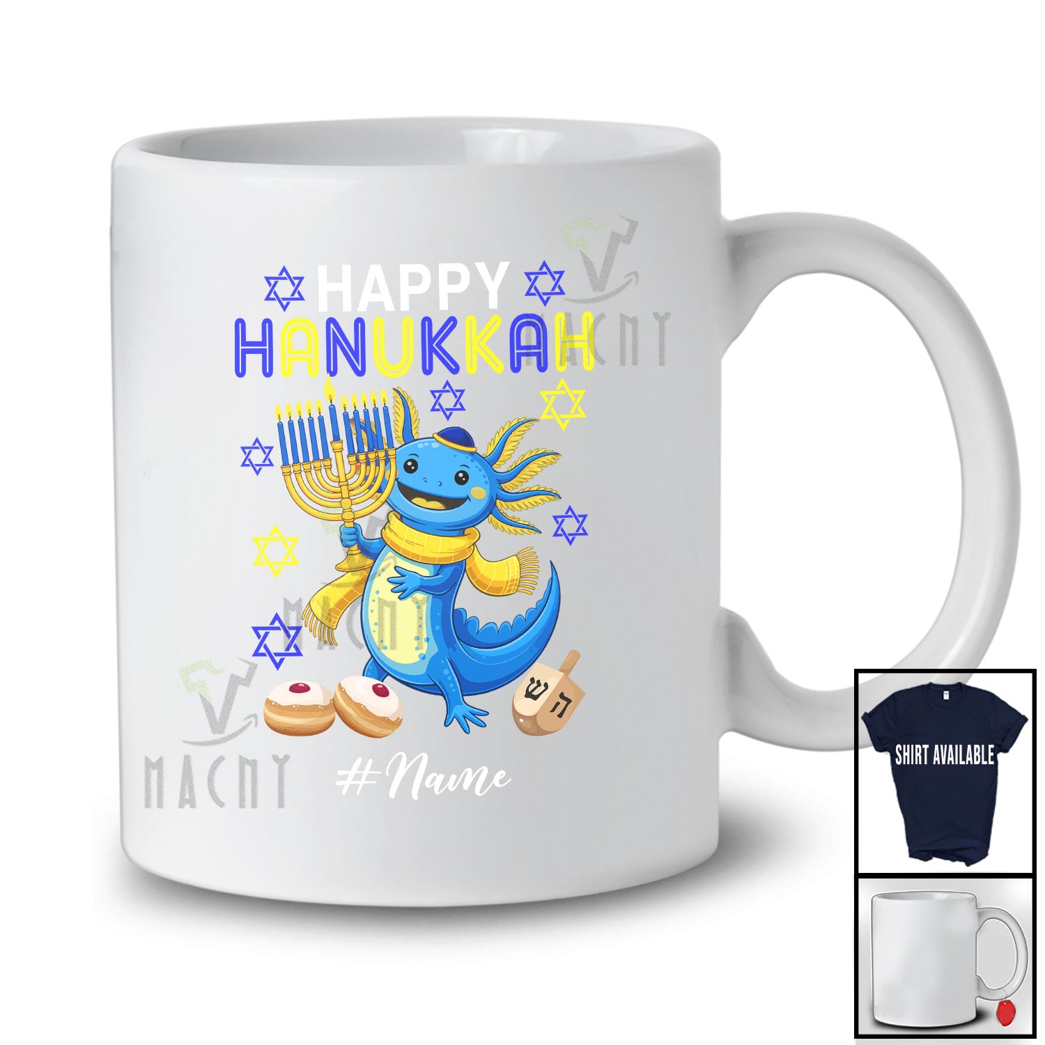 new MacnyStore - Personalized Custom Name Happy Hanukkah; Adorable Chanukah Lights Axolotl Animal; Family T-Shirt – Macnystore