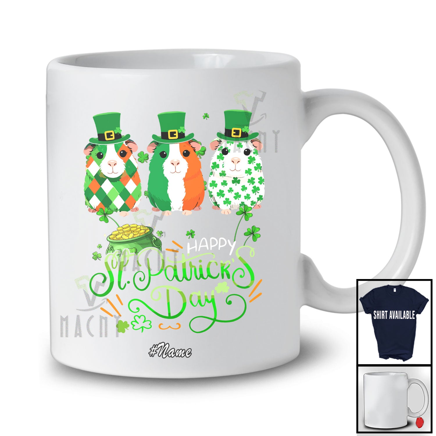 • Personalized Custom Name Happy St. Patrick's Day; Humorous Three Ireland Flag Guinea Pig T-Shirt. This cotton t-shirt is a durable staple product with a classic fit. One of the most popular items, it has a relaxed style made for everyday and casual wear.