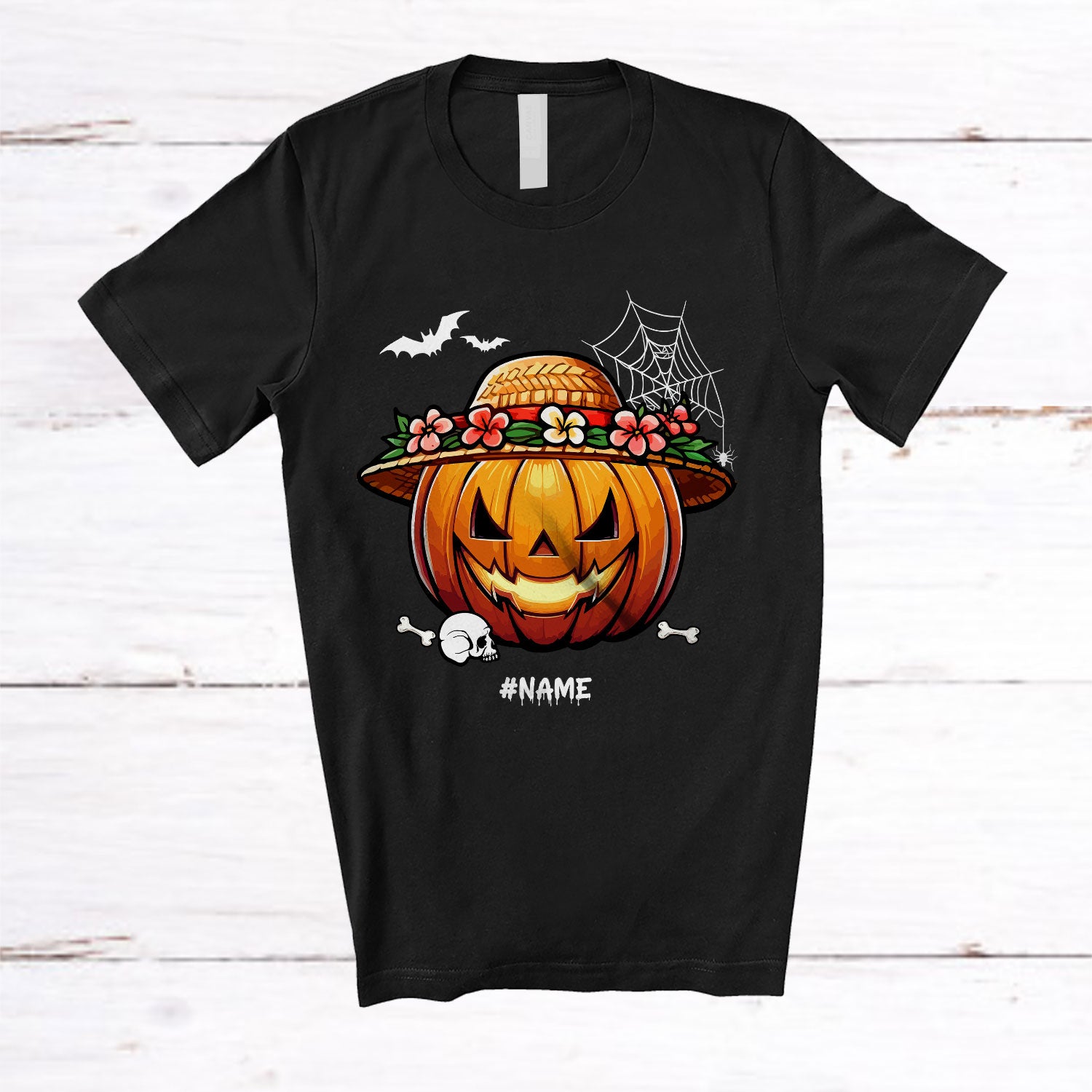 Personalized Custom Name Hawaii Carved Pumpkin; Scary Halloween Hawaiian Family Group T-Shirt. This cotton t-shirt is a durable staple product with a classic fit. One of the most popular items, it has a relaxed style made for everyday and casual wear.