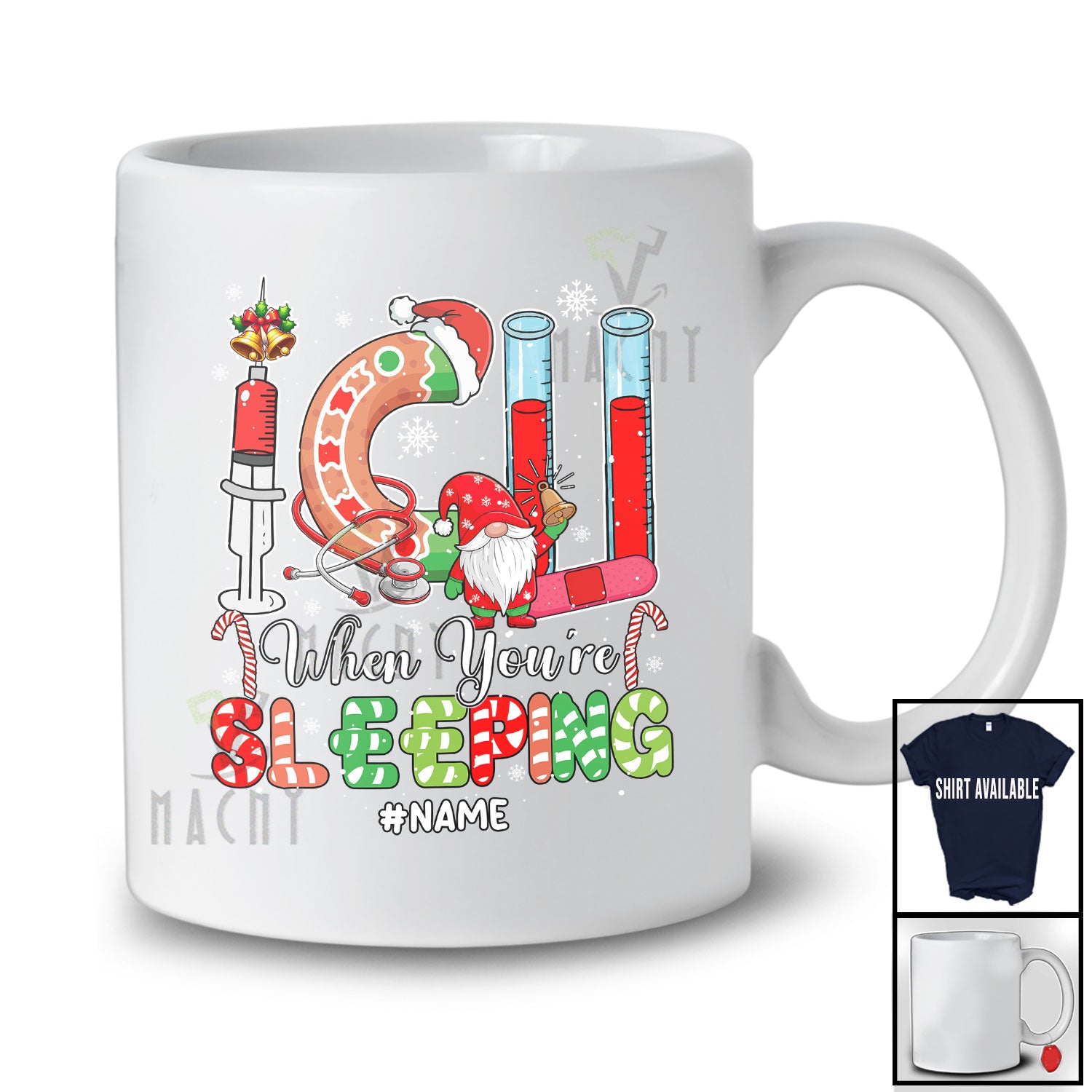 This Personalized Custom Name I.C.U When You're Sleeping; Humorous Christmas Snowing Gnome Nurse T-Shirt is great idea gift for your family, friends in this birthday, christmas, mother's day, father's day, patrick's day or any holiday.
