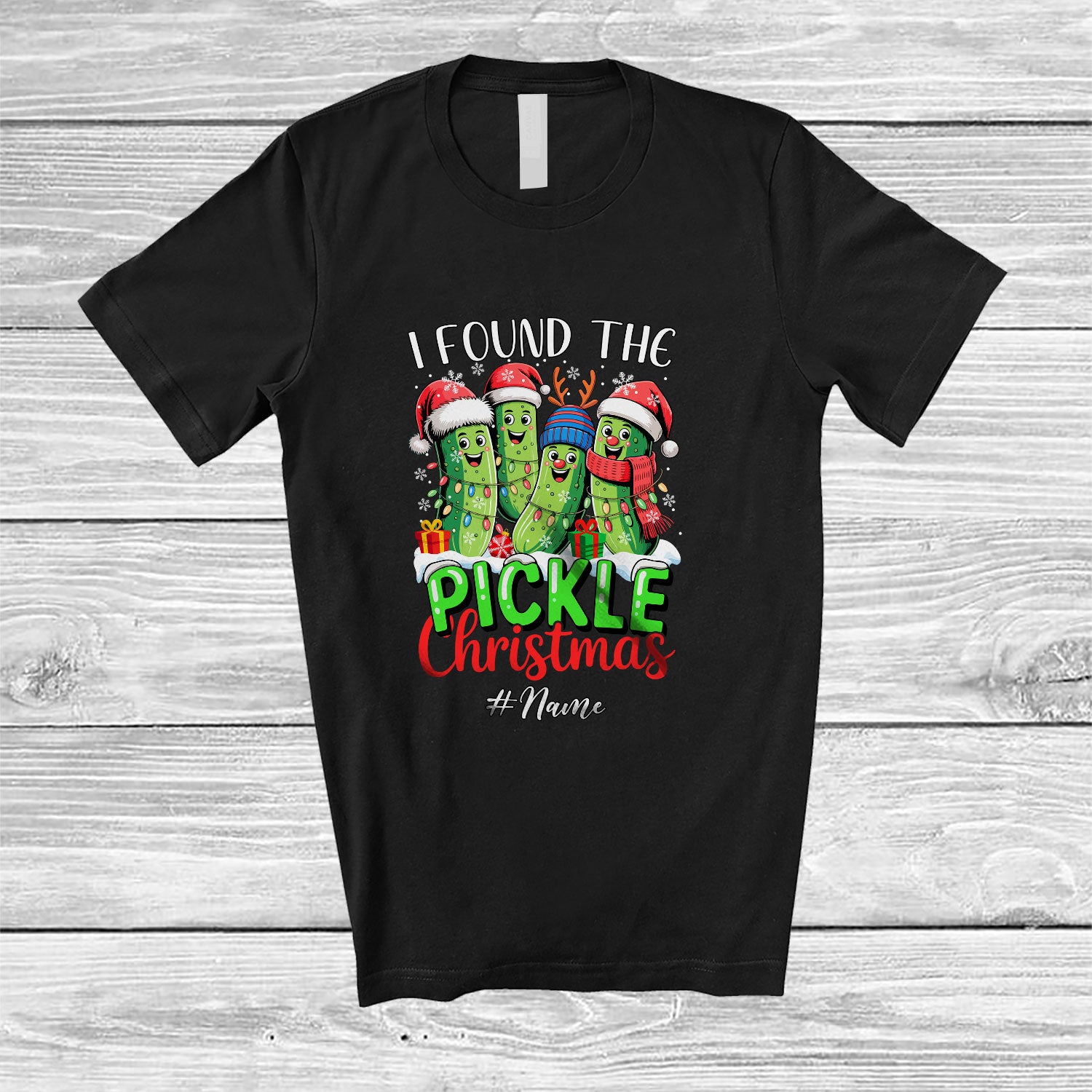 Personalized Custom Name I Found The Pickle Christmas; Joyful Four Santa Pickle Squad; Canning Season T-Shirt. This cotton t-shirt is a durable staple product with a classic fit. One of the most popular items, it has a relaxed style made for everyday and casual wear.
