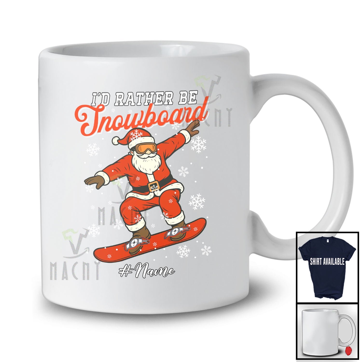 The Personalized Custom Name I'd Rather Be Snowboard; Humorous Christmas Santa Snowboarding T-Shirt destined to impress, and priced at only $12.95, for a limited time.