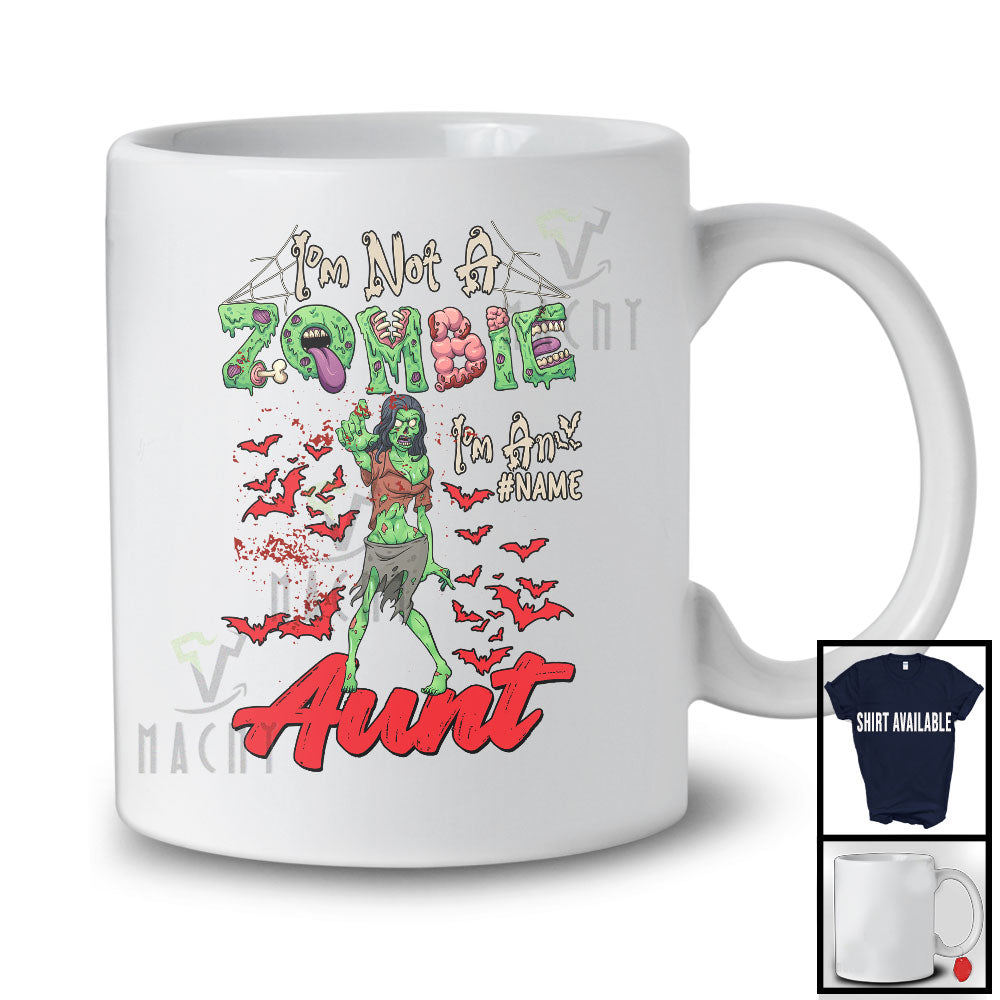 Personalized Custom Name I'm Not A Zombie I'm An Aunt; Scary Halloween Family Group T-Shirt