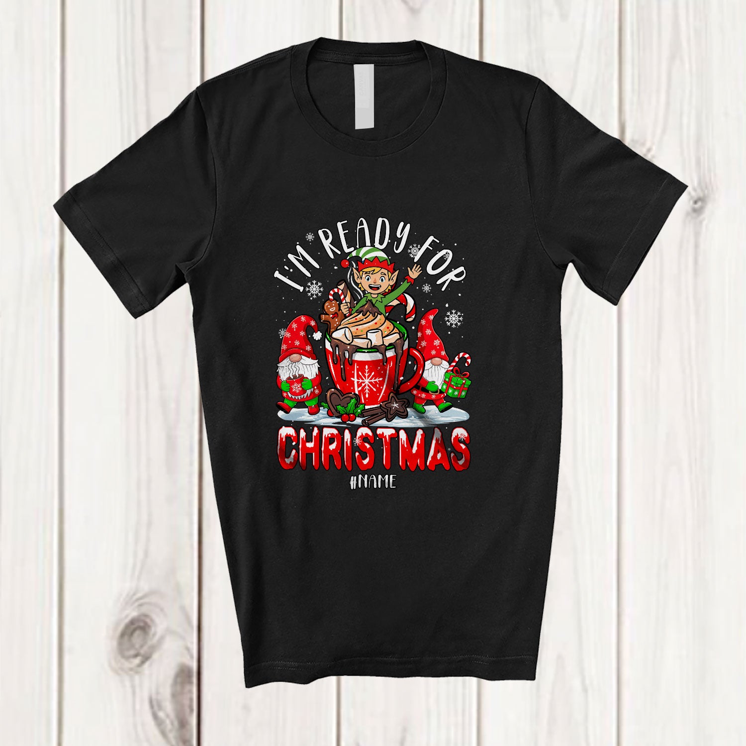 Personalized Custom Name I'm Ready For Christmas; Lovely Santa Elf In Coffee Cup Gnomes T-Shirt