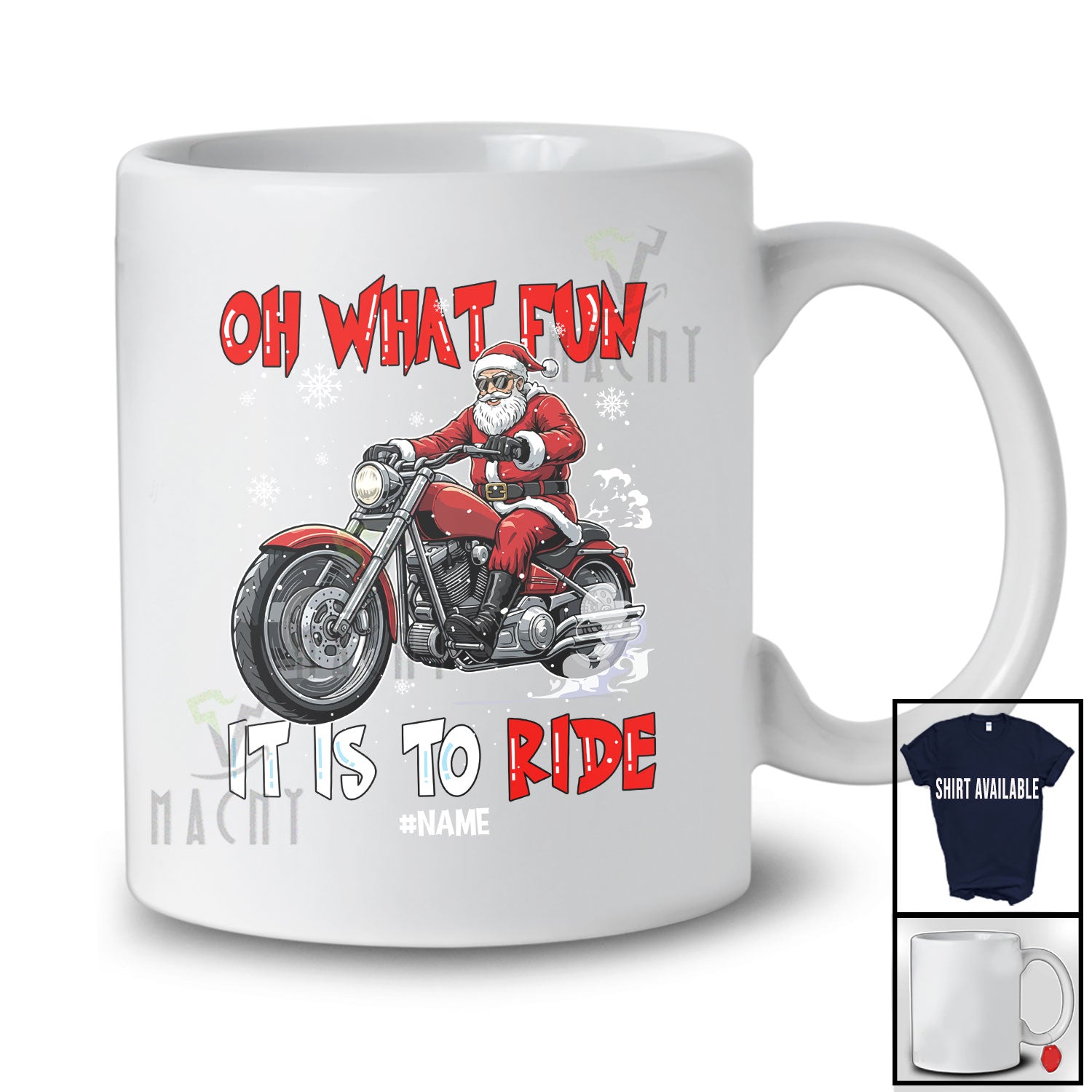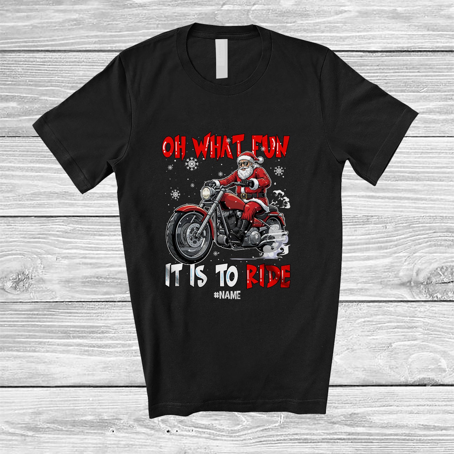 • Personalized Custom Name It Is To Ride; Amusing Christmas Santa Biker Riding Motorcycle T-Shirt. This cotton t-shirt is a durable staple product with a classic fit. One of the most popular items, it has a relaxed style made for everyday and casual wear.