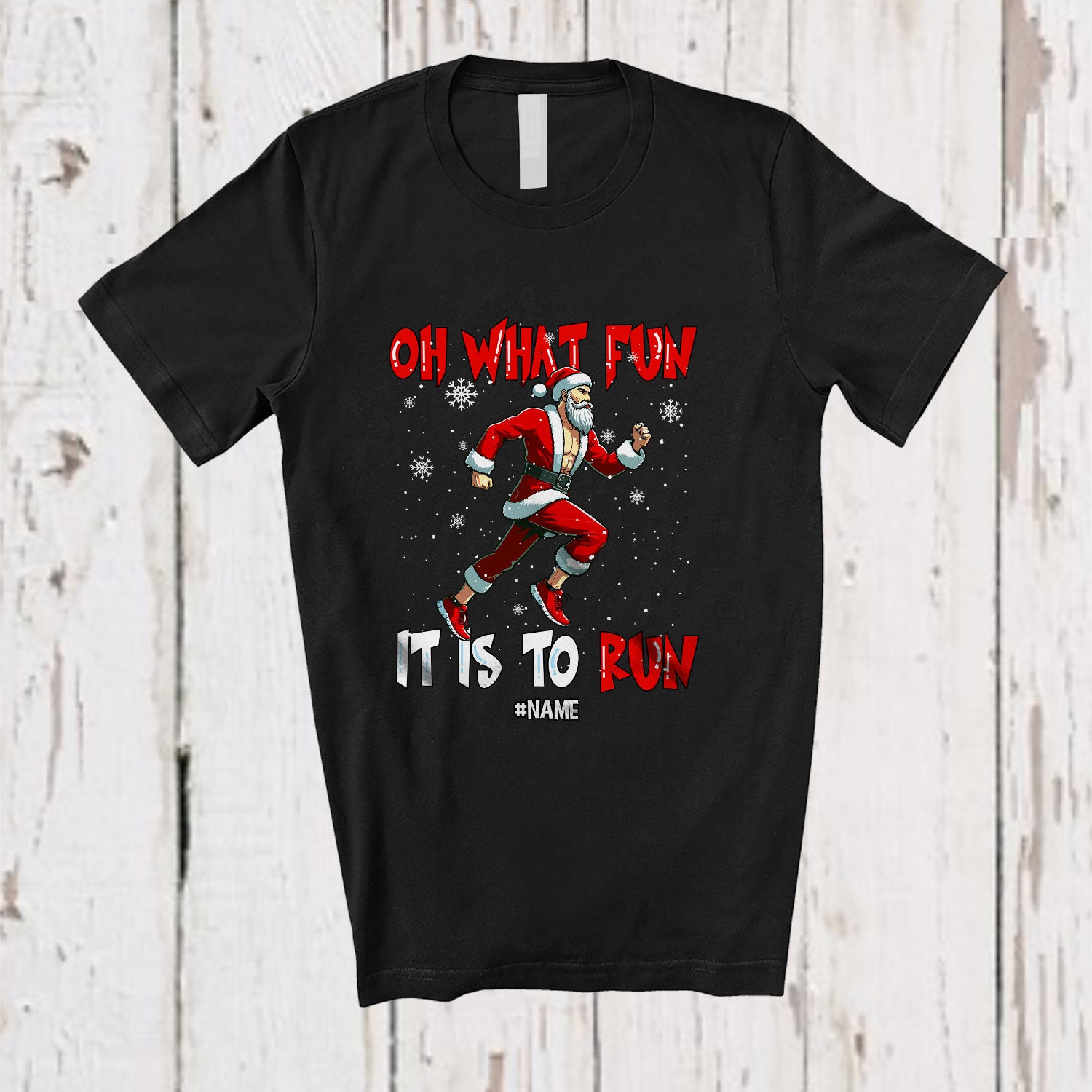 Personalized Custom Name It Is To Run; Awesome Christmas Tree Snowing Santa Running T-Shirt