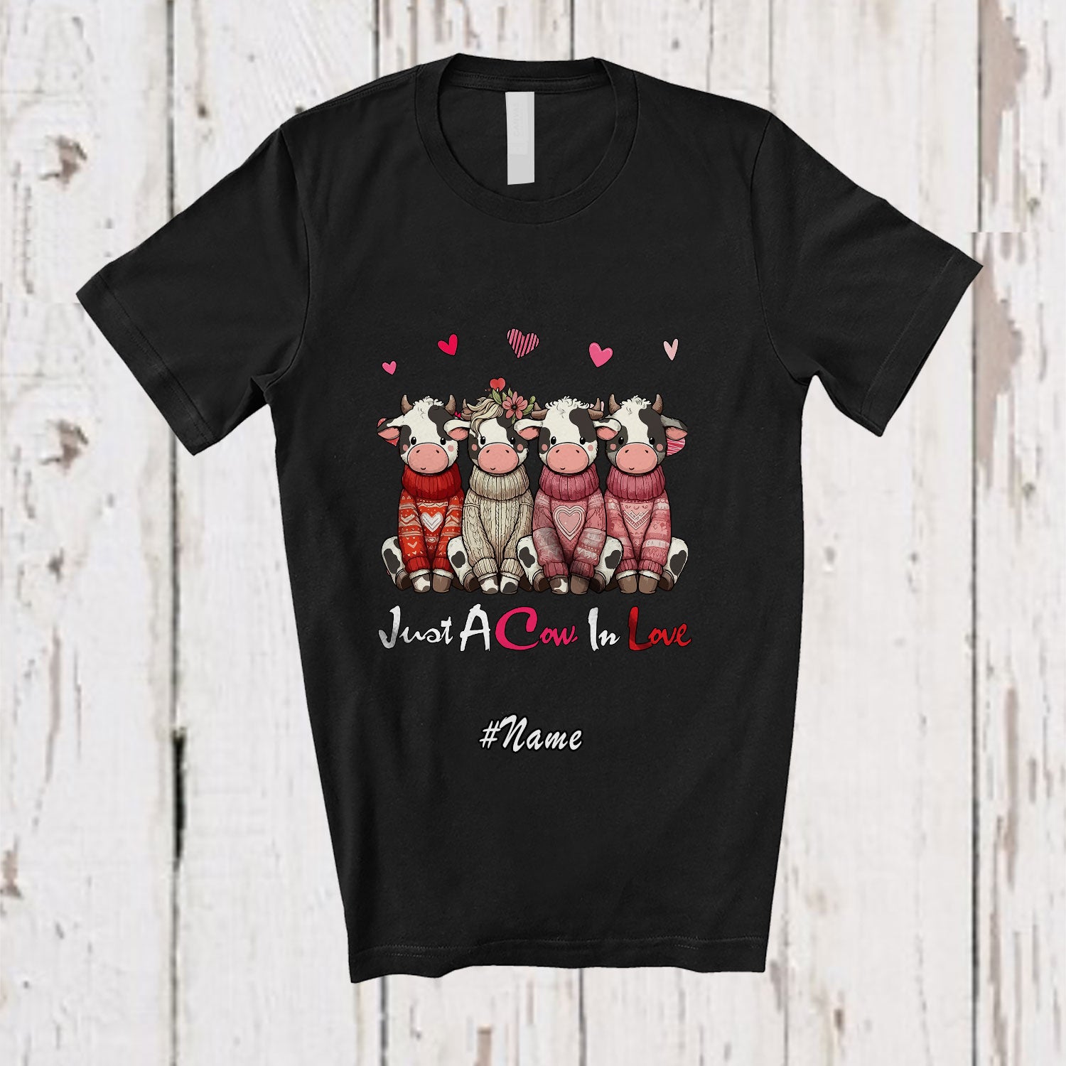 Personalized Custom Name Just A Cow In Love; Amusing Valentine's Day Cow Hearts; Farming Farmer T-Shirt