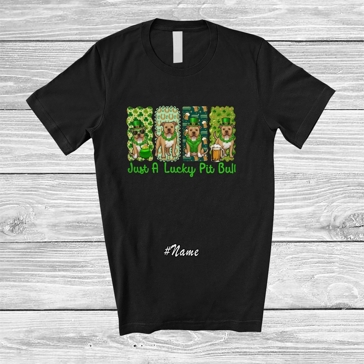 Personalized Custom Name Just A Lucky Pit Bull; Lovely St. Patrick's Day Shamrock Pit Bull Owner Lover T-Shirt