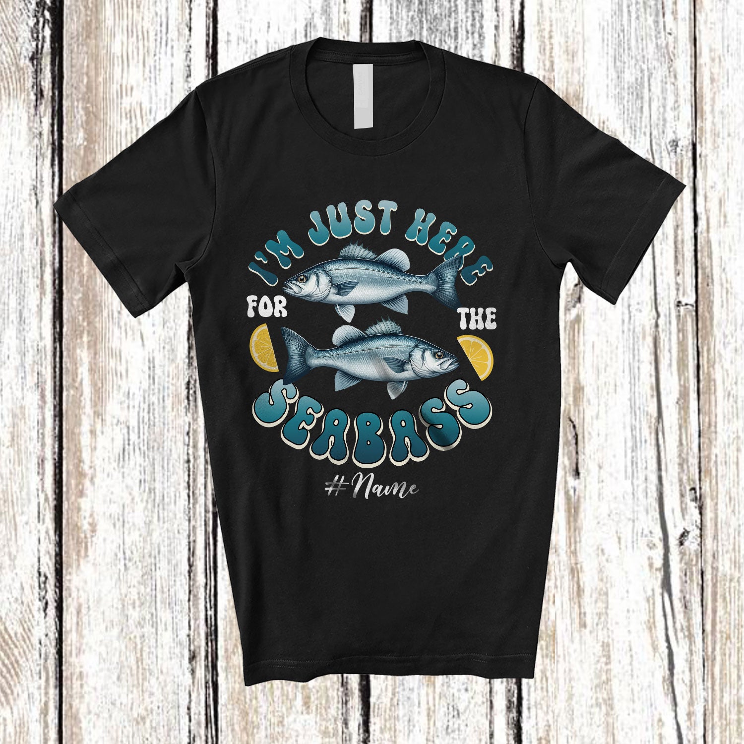 Personalized Custom Name Just Here For The Seabass; Joyful Seafood Boil Party Fishing Food T-Shirt
