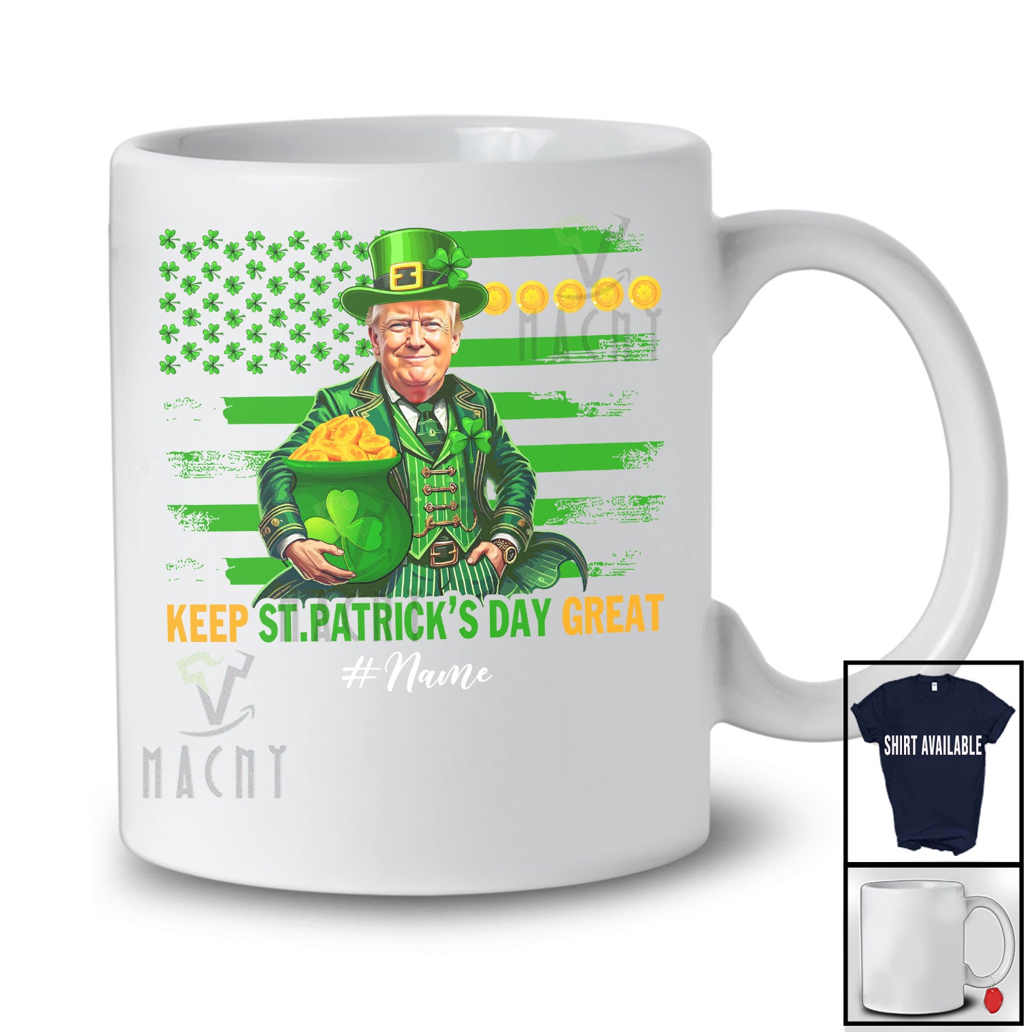 This Personalized Custom Name Keep St. Patrick's Day Great; Humorous Leprechaun Trump Back T-Shirt is great idea gift for your family, friends in this birthday, christmas, mother's day, father's day, patrick's day or any holiday.