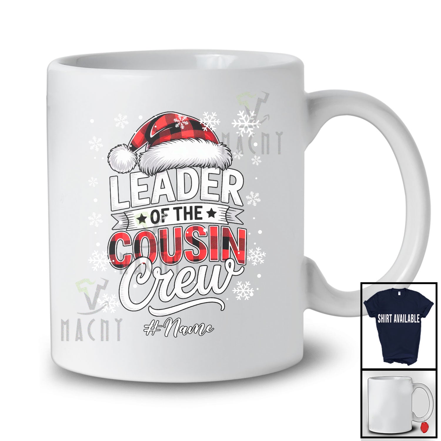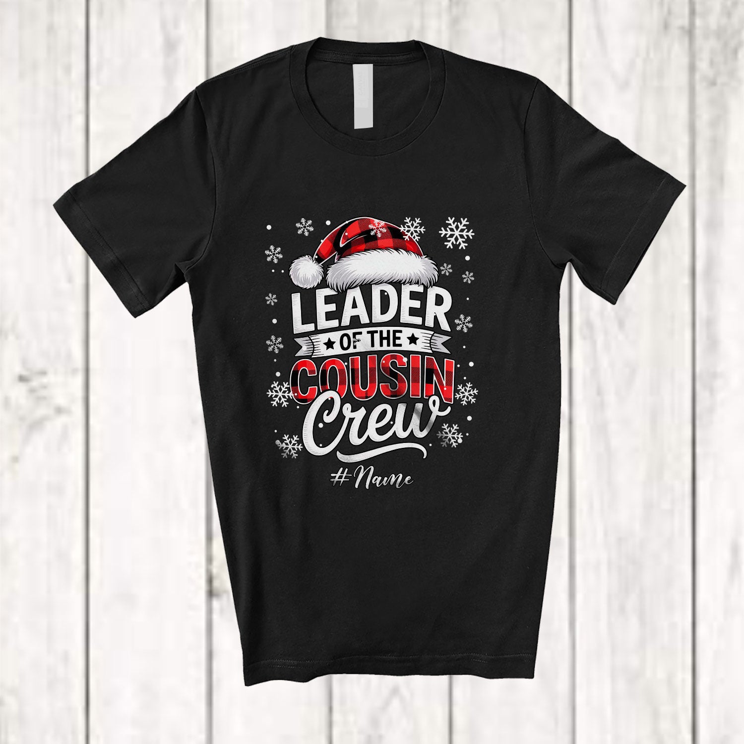 • Personalized Custom Name Leader Of The Cousin Crew; Humorous Christmas Plaid Santa; Family T-Shirt. This cotton t-shirt is a durable staple product with a classic fit. One of the most popular items, it has a relaxed style made for everyday and casual wear.